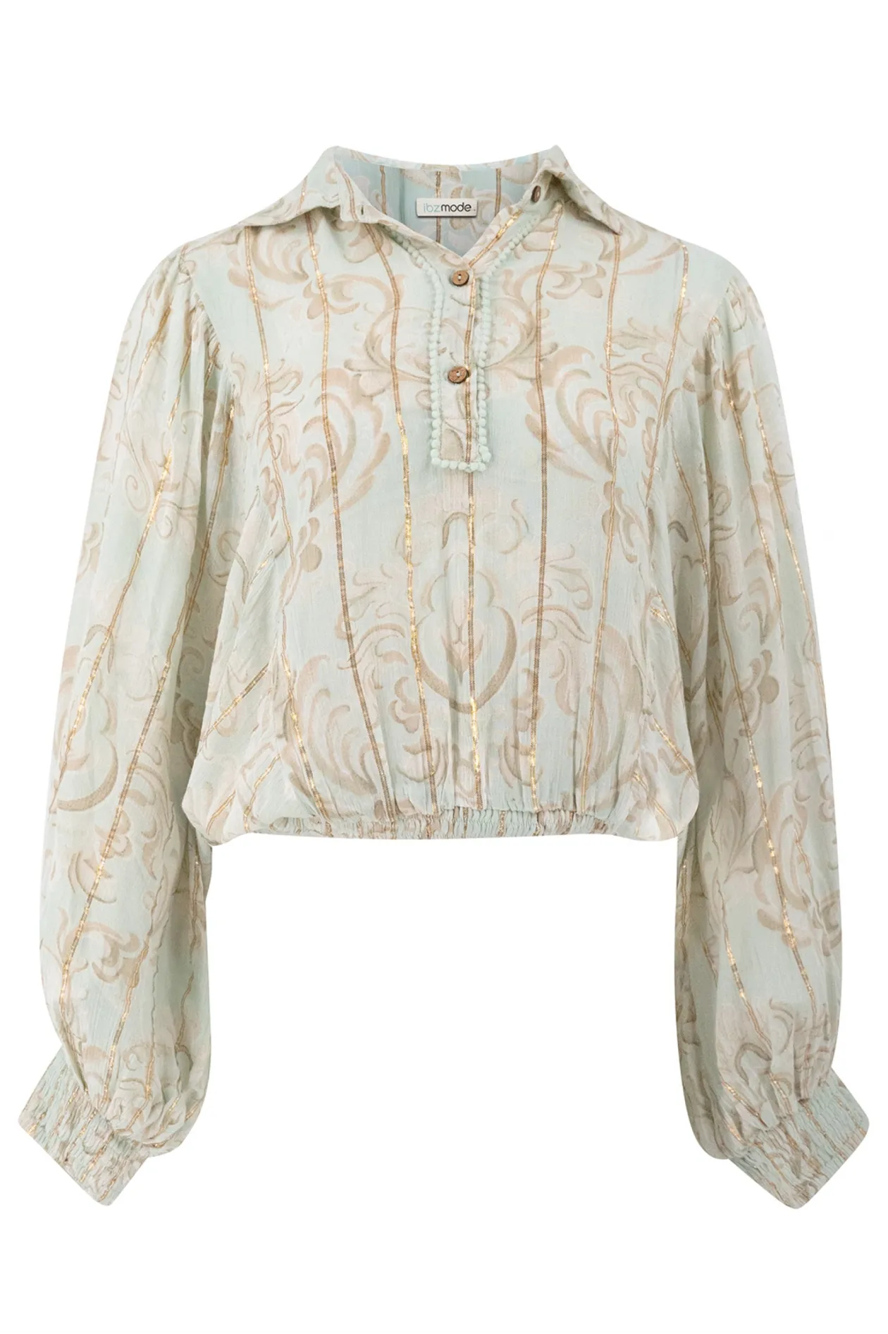 Entdecke unsere schöne „Bluse Briso Baroque Pale Blue Print“. Diese Bluse kombiniert einen raffinierten Barockdruck mit einer eleganten hellblauen Farbe, perfekt für jeden Anlass. Die Verwendung von luxuriösem Lurexgarn verleiht der Bluse einen subtilen Glanz und ein schickes Aussehen. Vervollständige dein Outfit mit dieser auffälligen Bluse, die sowohl stilvoll als auch bequem ist. Ergänze deine Garderobe mit diesem Must-have und glänze in jeder Situation!