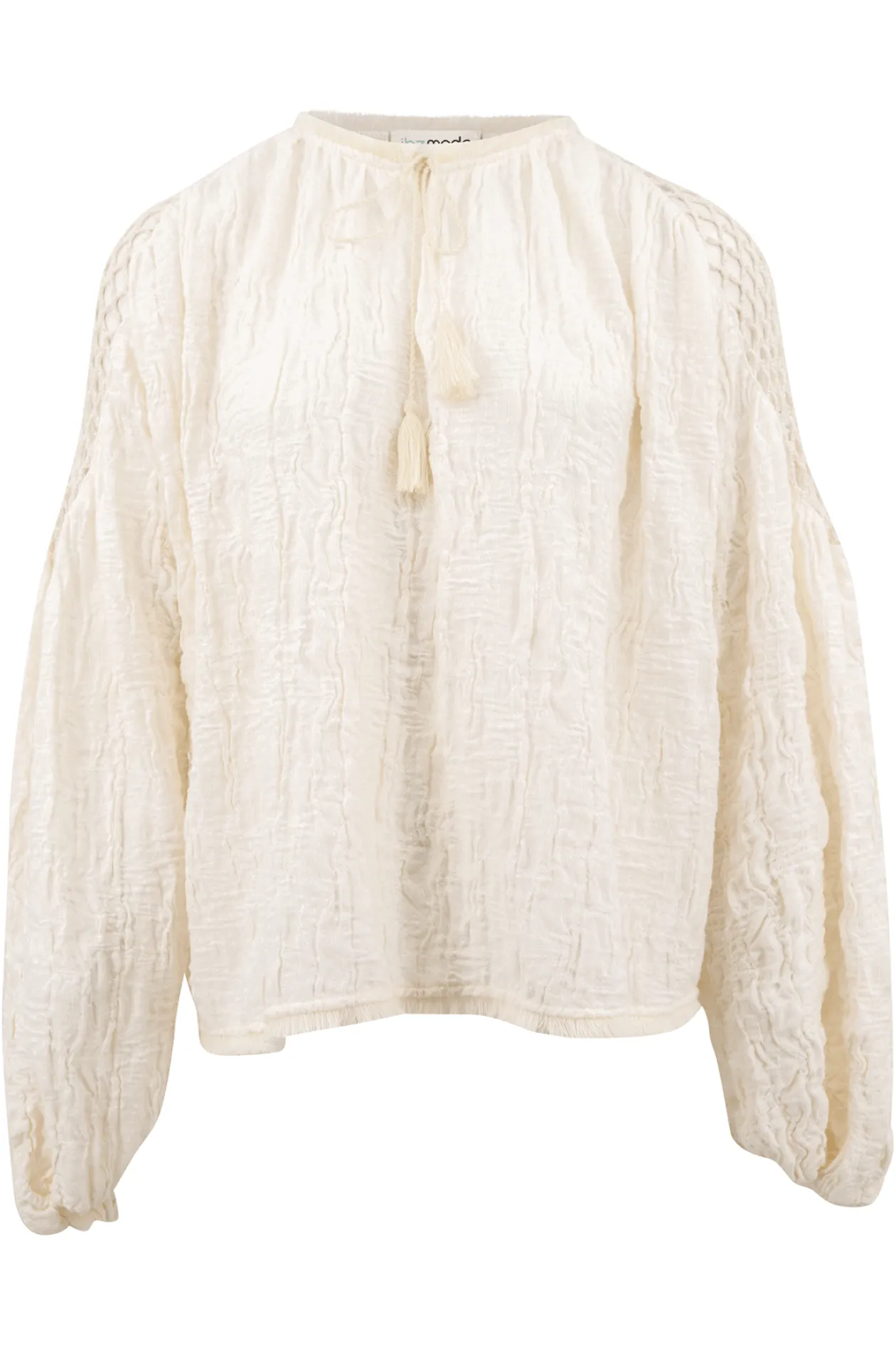 Entdecke die Bluse Corazon Off White, eine perfekte Mischung aus Boho-Chic und modernem Flair. Diese Bluse aus 100% Baumwolle mit dezentem Knittereffekt und Häkeldetails strahlt mühelose Eleganz aus. Kombiniere sie mit deiner Lieblingsjeans oder einem luftigen Rock und zeige deinen einzigartigen Stil und deine Freiheit!