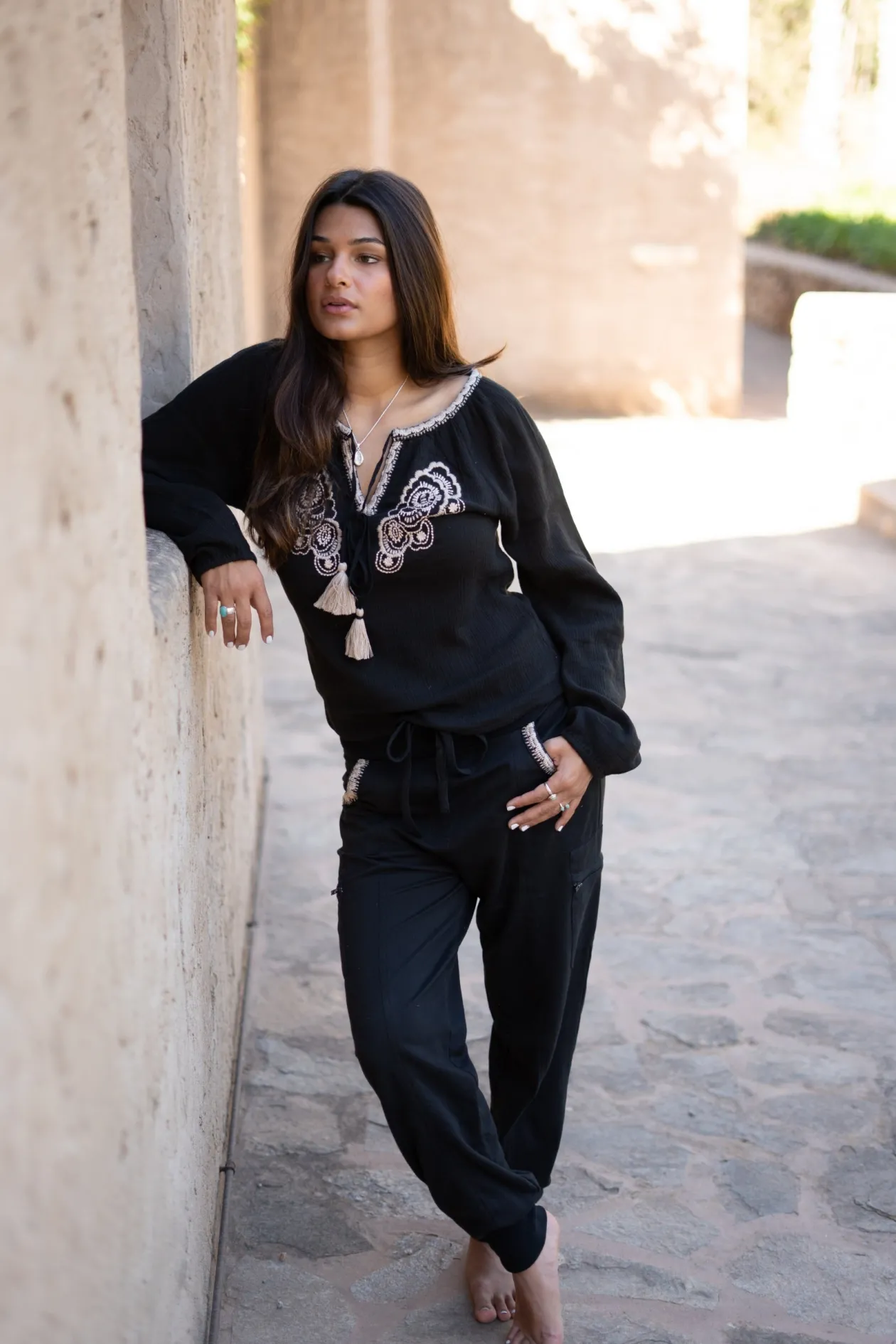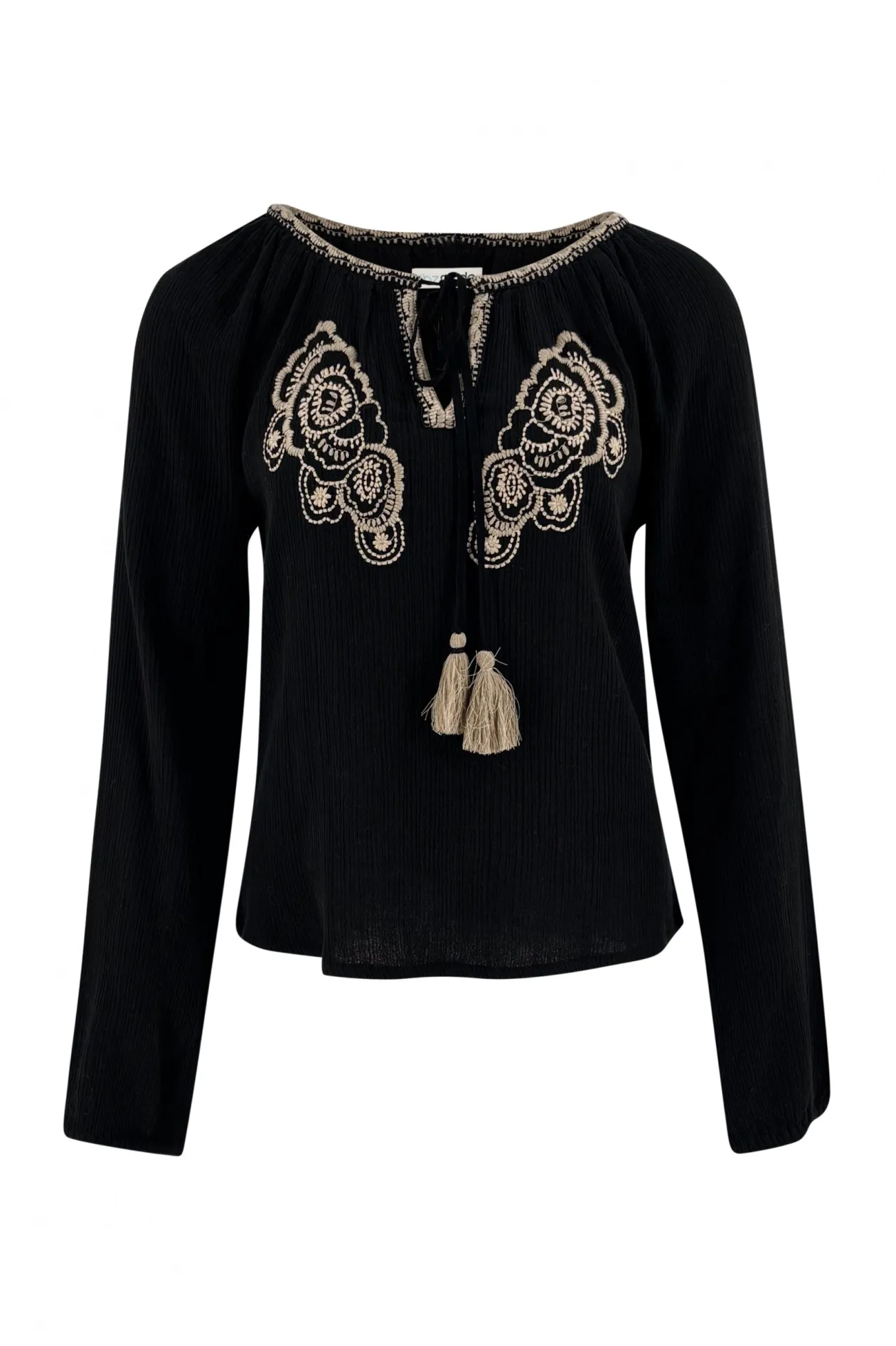 Entdecke die Bluse Corazon Embroidery Black, in der sich Stil und Eleganz in einem zeitlosen Design vereinen. Diese Bluse aus reiner Baumwolle besticht durch ihre raffinierte Stickerei und ihre vielseitige Passform. Kombiniere sie mit einer High-Waisted-Jeans für einen mühelosen Ibiza-Look. Lass deine innere Fashionista strahlen!