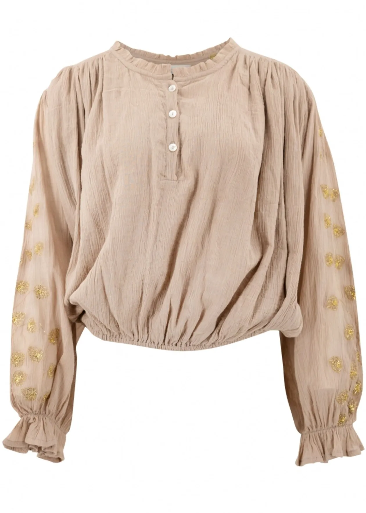 Entdecke die Bluse Danza Flores Light taupe, eine perfekte Mischung aus Eleganz und verspieltem Flair. Mit raffinierten Stickereien und charmanten Rüschen ist diese Bluse ein Muss für jede Garderobe. Kombiniere sie mit High-Waisted-Jeans für einen mühelos eleganten Look. Umarme deinen einzigartigen Stil und strahle Selbstbewusstsein aus!