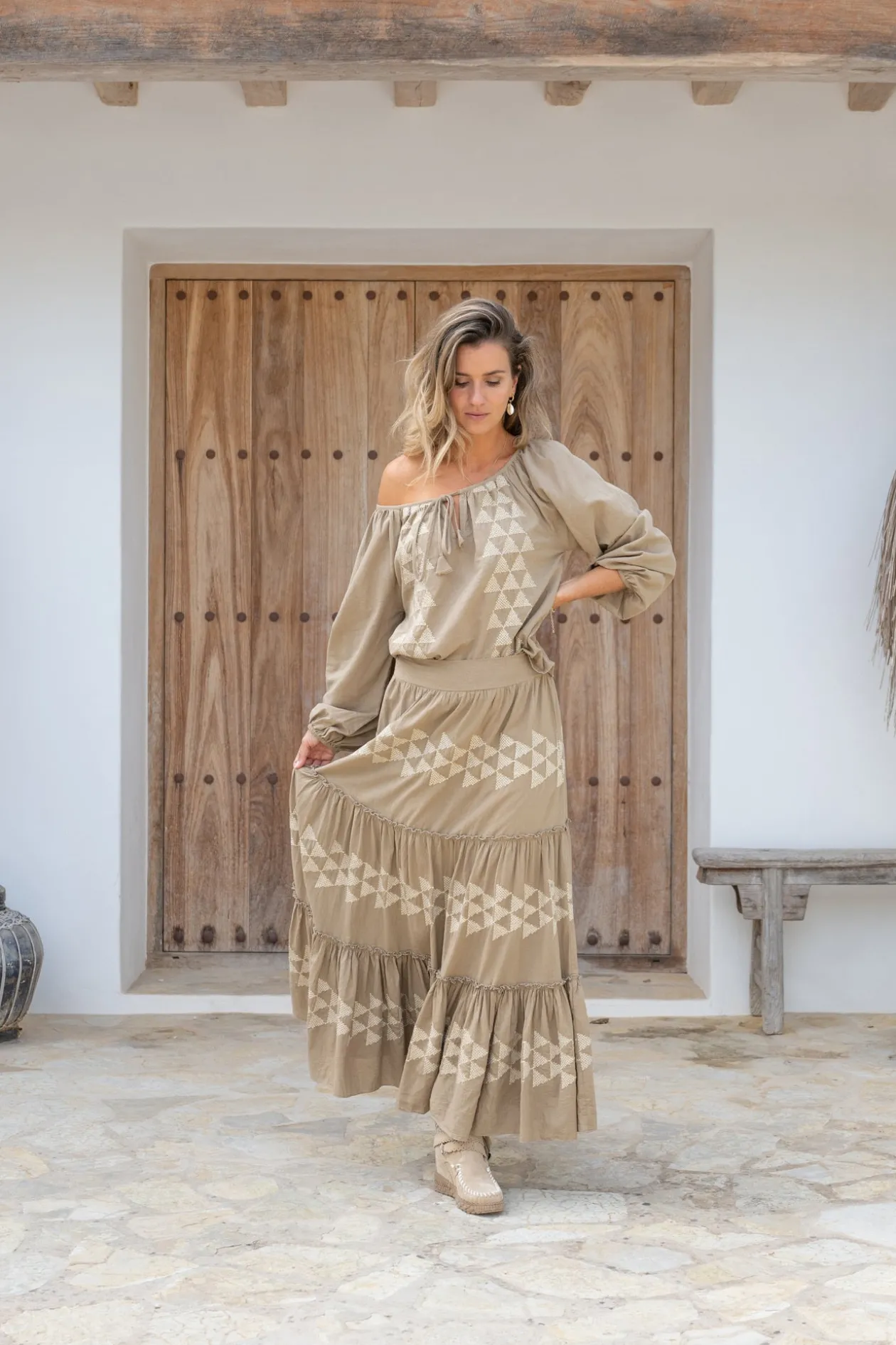 Entdecke die Bluse Serena Cuadros Taupe, ein stilvolles Essential, das mühelos Ibiza-Vibes versprüht. Die Bluse aus weicher Baumwolle mit raffinierten Stickereidetails hat eine perfekte Passform. Kombiniere sie mit High-Waisted-Jeans für einen schicken Look oder mit einem Rock für ein Bohème-Flair. Umarme deinen einzigartigen Stil!