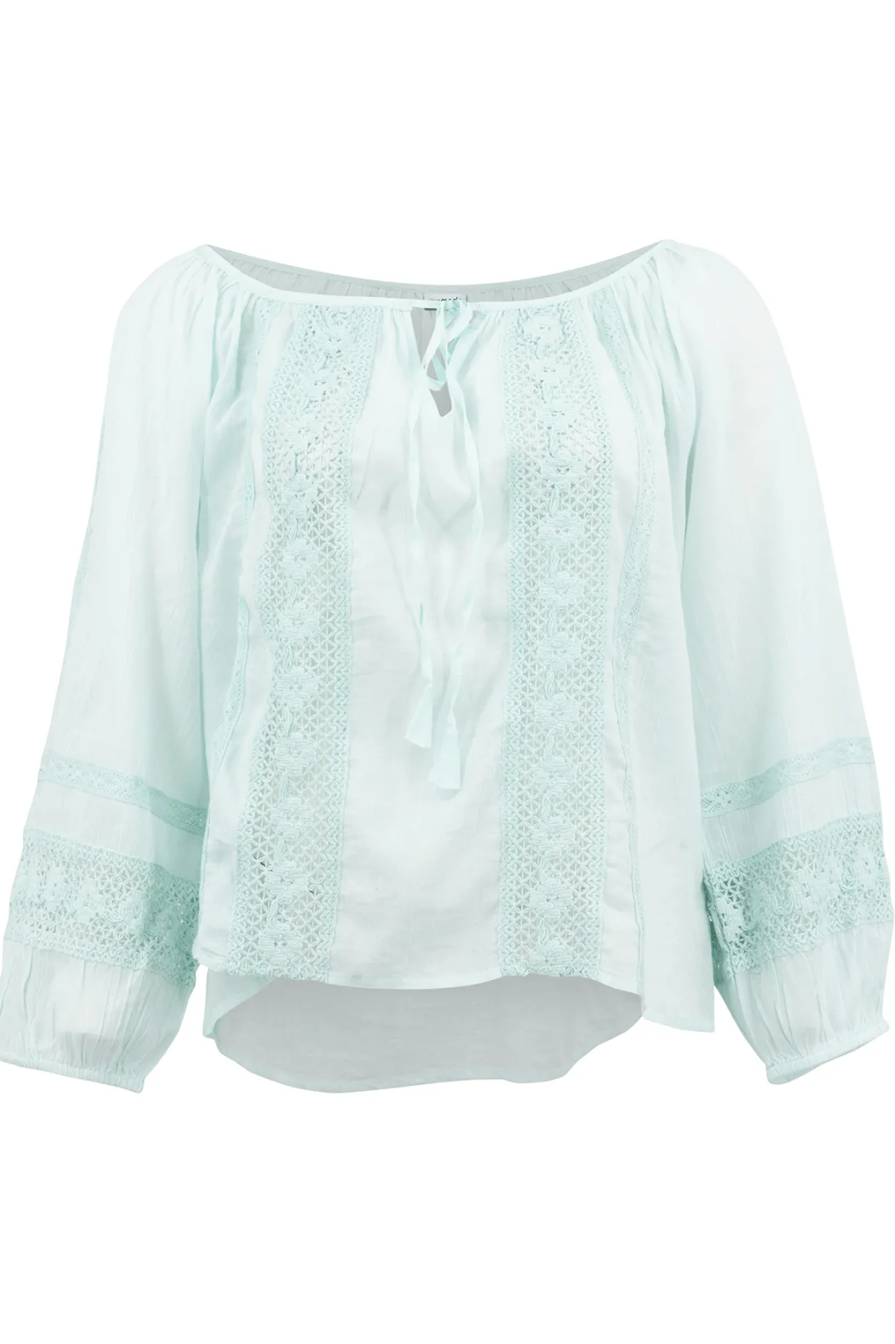 Die Bluse Lace Mint ist ein absolutes Must-have für deinen Kleiderschrank! Die übergroße Passform mit dem luftigen Baumwollstoff und den eleganten Spitzendetails verleiht dir einen mühelos schicken Look. Trage sie schulterfrei für einen verspielten Twist und kombiniere sie mit deiner Lieblingsjeans für einen trendigen Look. Fühle dich frei und stilvoll!