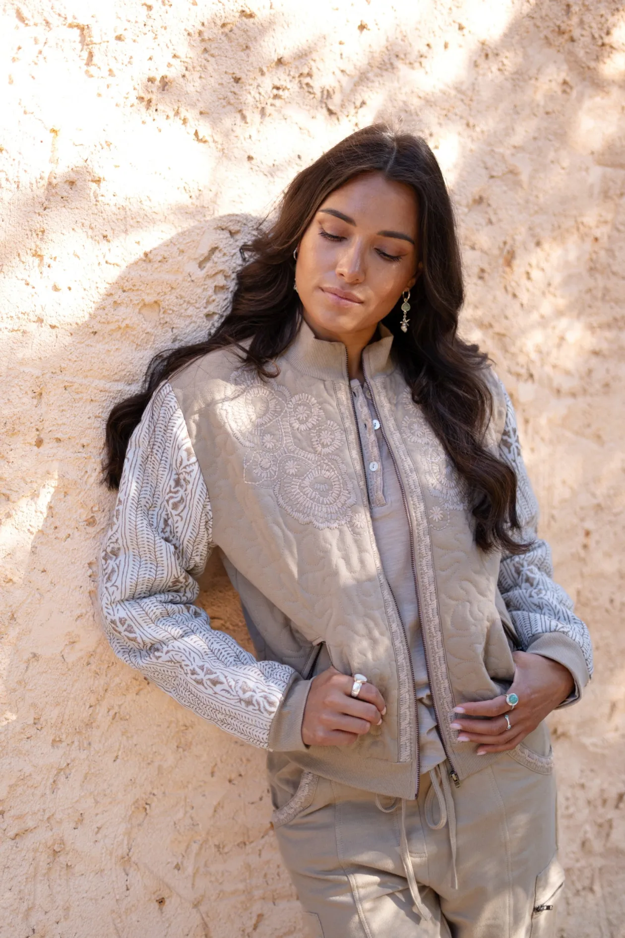 Entdecke die Bomberjacke Corazon Sand, ein Must-have für jede Fashionista! Mit ihren gestickten Details und dem natürlichen Farbton ist sie die perfekte Mischung aus cool und stylisch. Kombiniere sie mit deiner Lieblingsjeans für einen lässigen Look oder trage sie über einem Kleid für einen ausgefallenen Twist. Umarme deinen einzigartigen Stil!