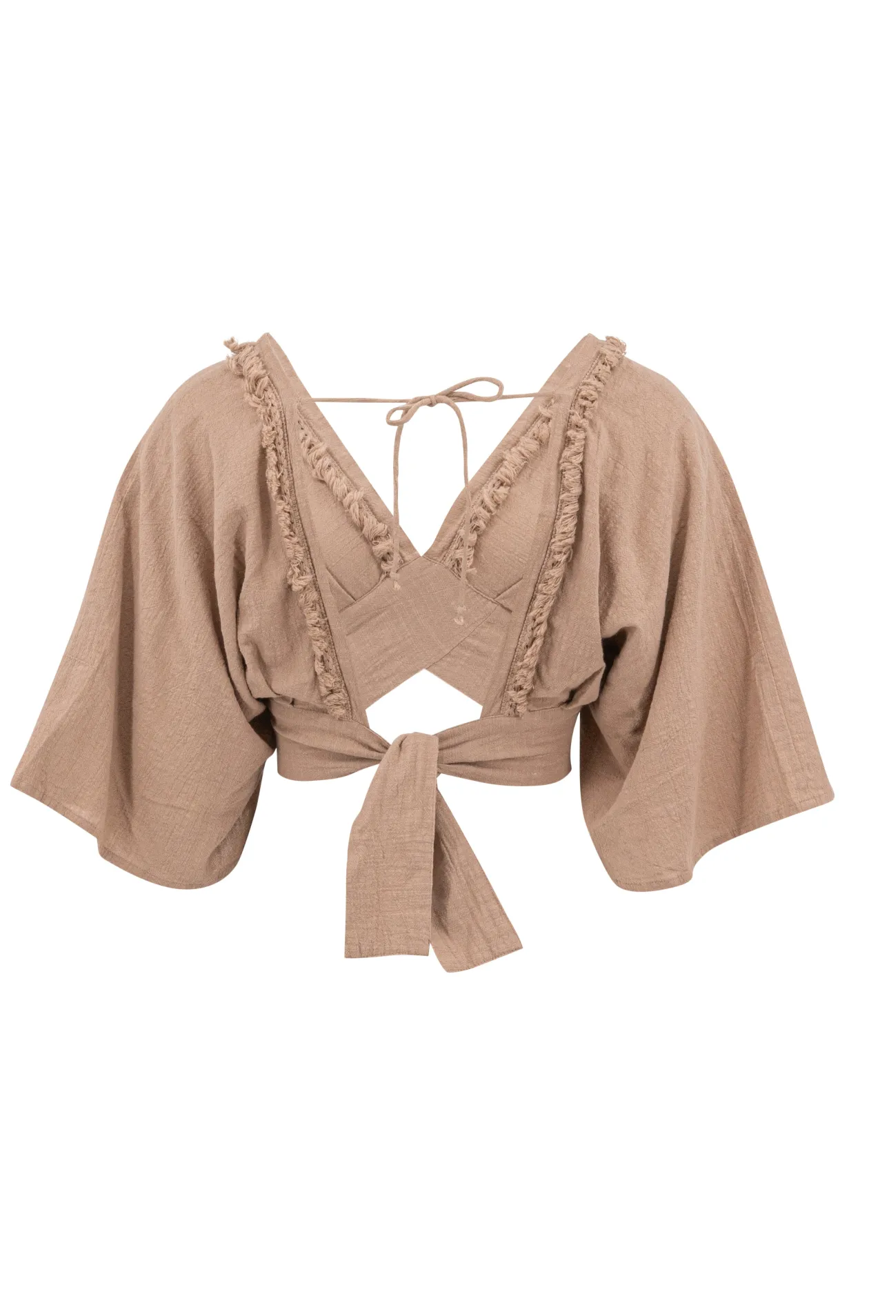 Entdecke das Crop Top Lio Brown, ein ultimatives Must-have für deine Sommergarderobe! Dieses Top aus 100% Baumwolle mit tiefem V-Ausschnitt und Rüschen versprüht Boho-Chic. Kombiniere es mit einem hoch taillierten Rock oder einer Jeans für einen mühelosen Ibiza-Style. Spüre die Freiheit und strahle mit Stil!