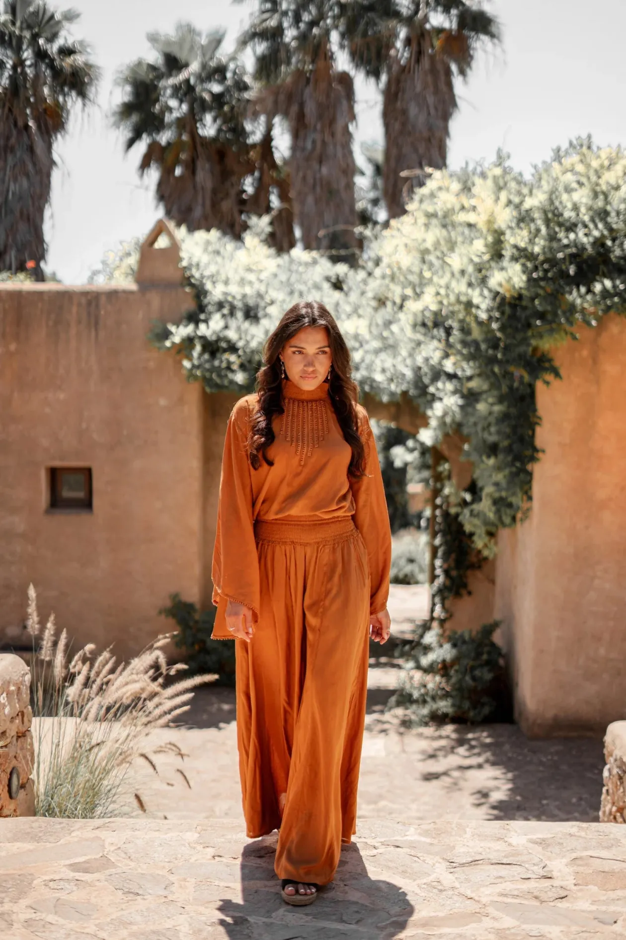 Entdecke das ultimative Must-Have für deinen Kleiderschrank: die Flair Pants Neva Brick! Diese Hose aus 100 % Viskose mit elastischem Bund und ausgestelltem Bein bietet sowohl Komfort als auch Stil. Kombiniere sie mit einem verkürzten Top und Sandalen für einen mühelosen, schicken Look. Fühle dich fabelhaft und genieße jeden Schritt!