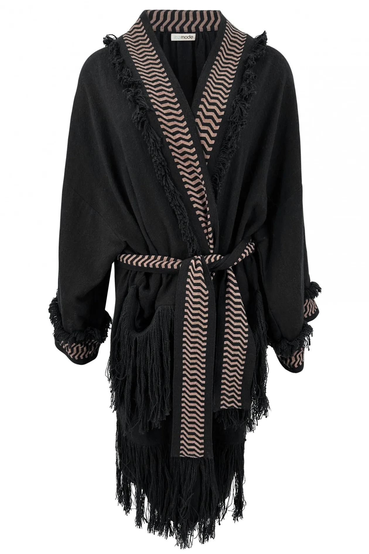 Der Fringe Kimono Esthetica Black ist das ultimative Must-have für einen Bohème-Chic-Look! Dieser Kimono aus 100 % Baumwolle ist mit verspielten Fransen verziert und bietet nicht nur Stil, sondern auch Komfort. Kombiniere ihn mit deiner Lieblingsjeans und einem einfachen Oberteil für einen mühelosen, trendigen Look. Spüre die Freiheit und strahle Kreativität aus!