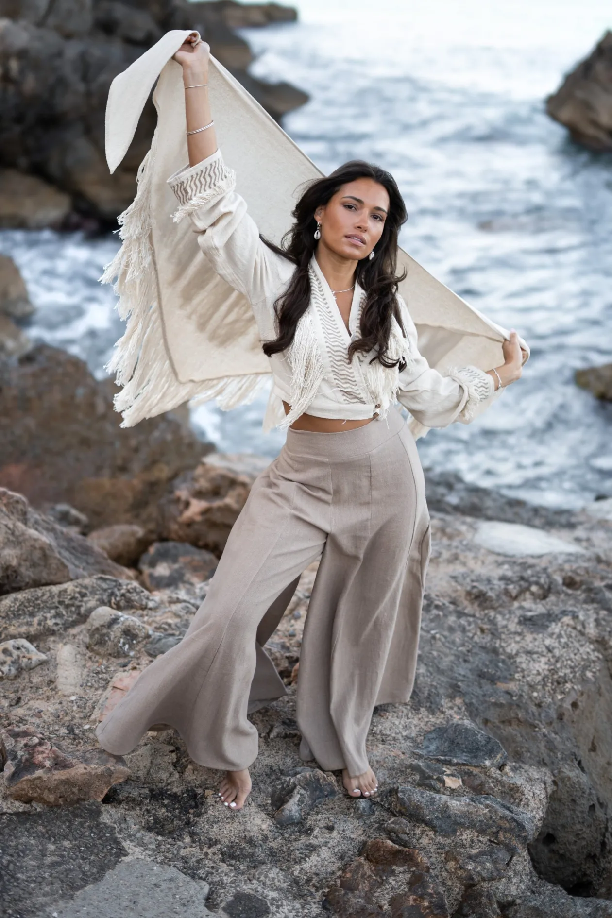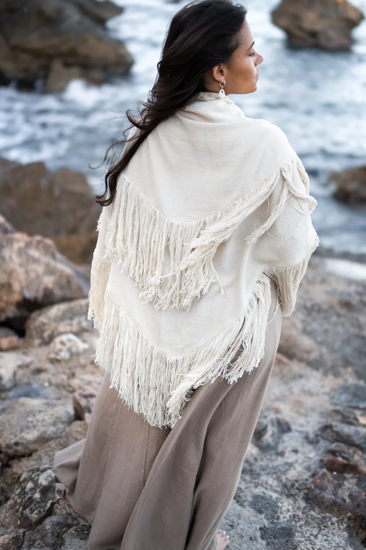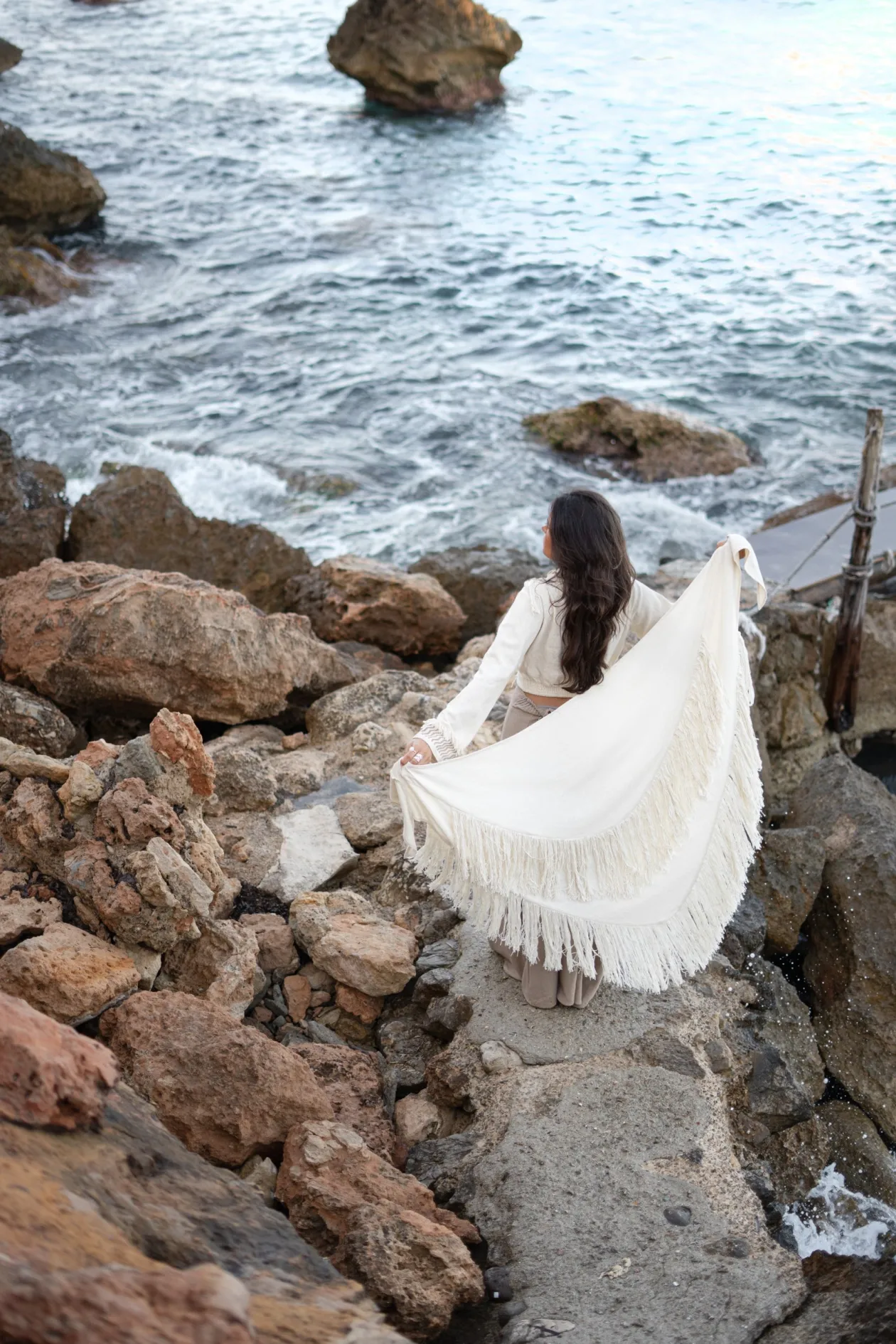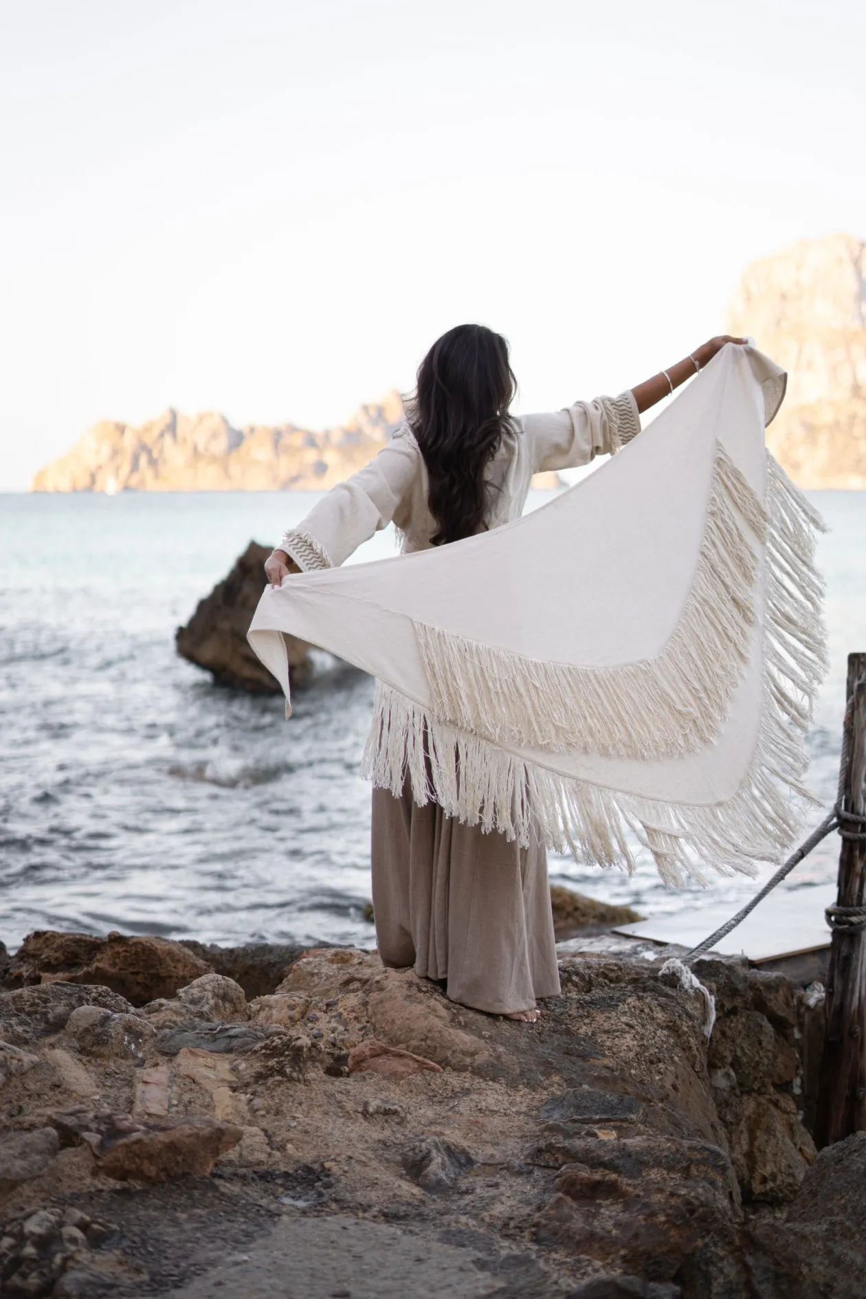 Entdecke den Fransenschal Flecos Ecru, ein Must-have für jeden Boho-Liebhaber. Mit seinem natürlichen Farbton und den verspielten Fransen verleiht dieser Schal jedem Outfit einen Hauch von Ibiza-Stimmung. Trage ihn als Wrap für eine extra warme Note und zeige deine kreative Ader. Lass deinen Stil erstrahlen!