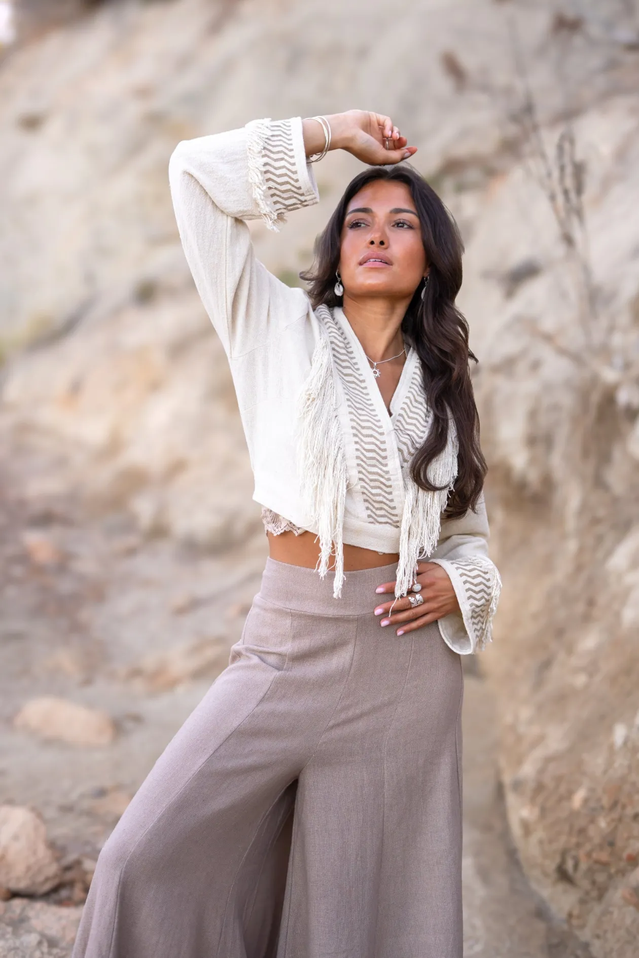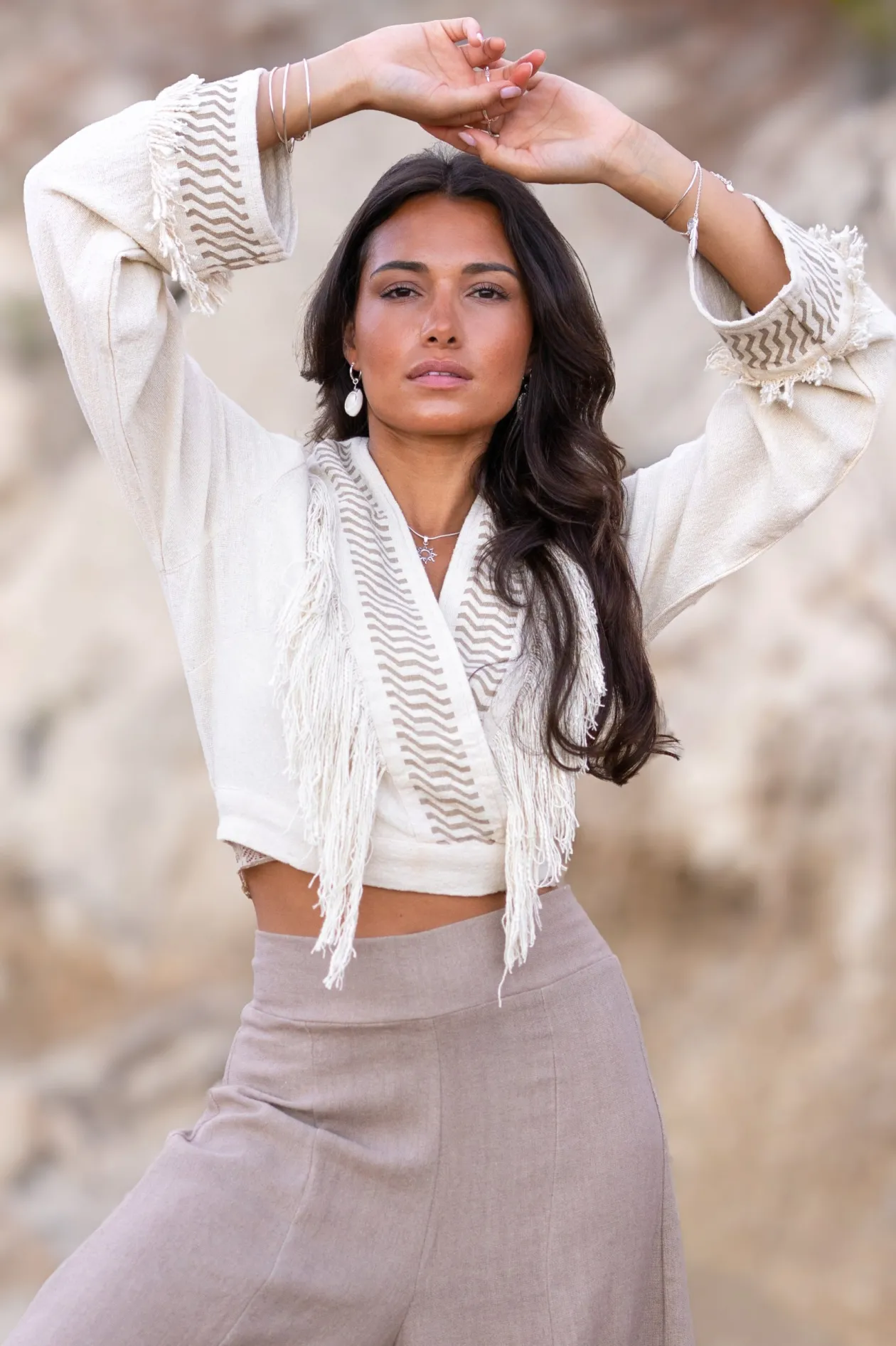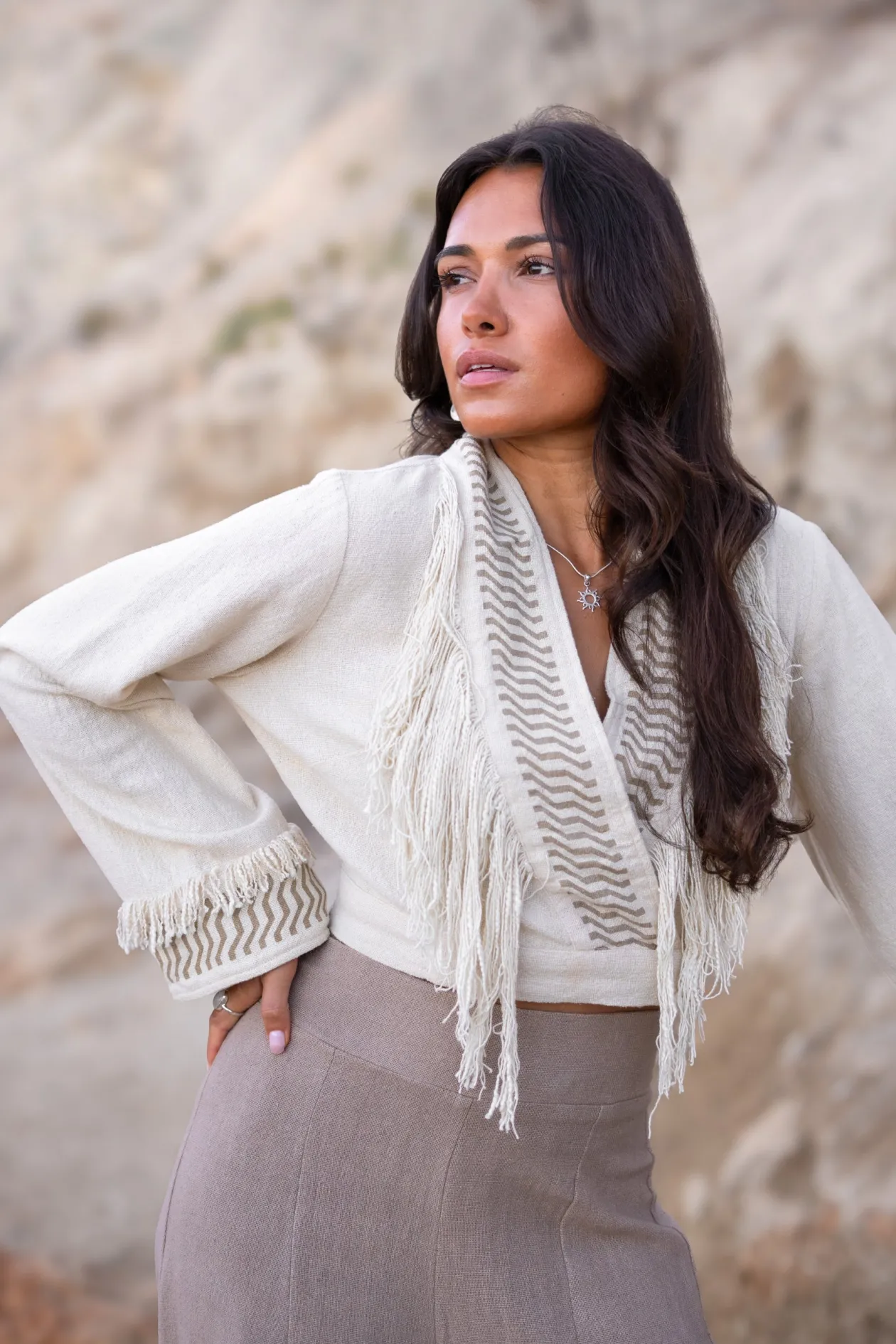 Das Fringe Top Esthetica Ecru ist dein neues Lieblingsteil für den Bohème-Chic-Look. Dieses kurze Oberteil aus 100% Baumwolle mit tiefem V-Ausschnitt und verspielten Fransen bietet ultimativen Komfort und Stil. Es lässt sich perfekt mit Jeans mit hoher Taille oder einem Rock kombinieren, um einen mühelosen und künstlerischen Look zu kreieren. Spüre die Freiheit und lass dich von deiner Kreativität leiten!