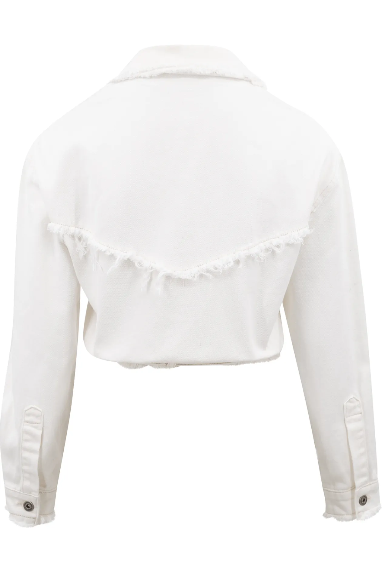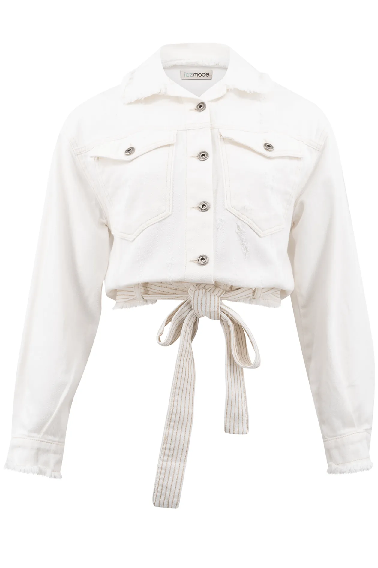 Tritt ein in die Welt des mühelosen Schickes mit der Jacke Nenita Off White! Die aus 100 % Baumwolle gefertigte Jacke kombiniert einen kurzen Schnitt mit beigen Nähten und ausgefransten Details für einen lässigen und dennoch raffinierten Look. Perfekt zu einem luftigen Kleid oder deiner Lieblingsjeans – diese Jacke ist dein neues Style-Statement.