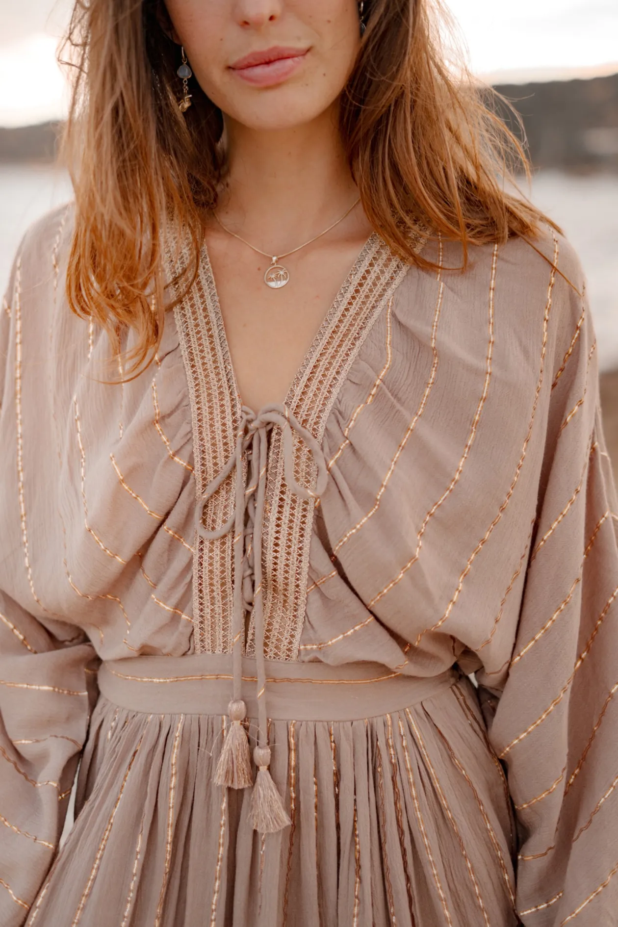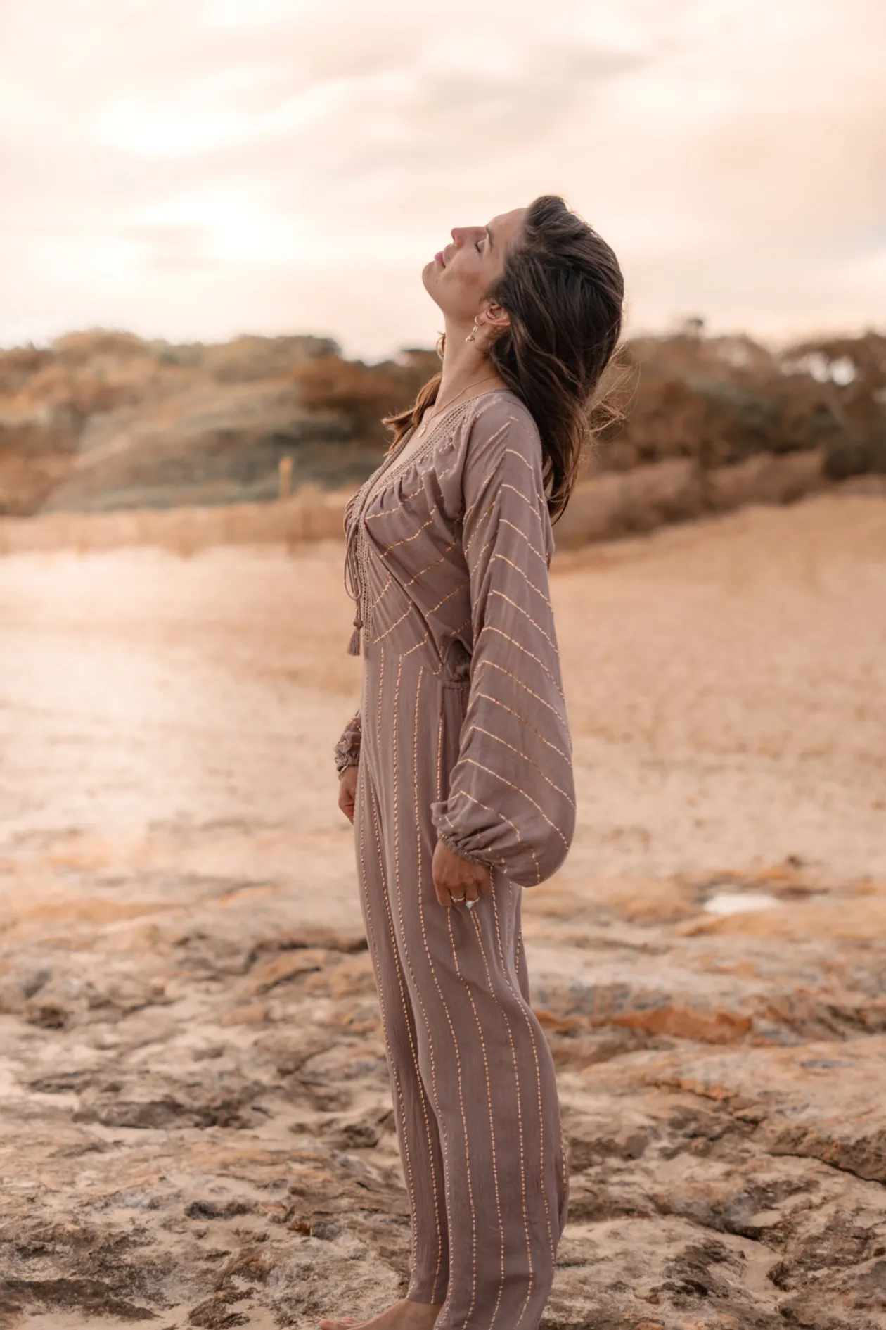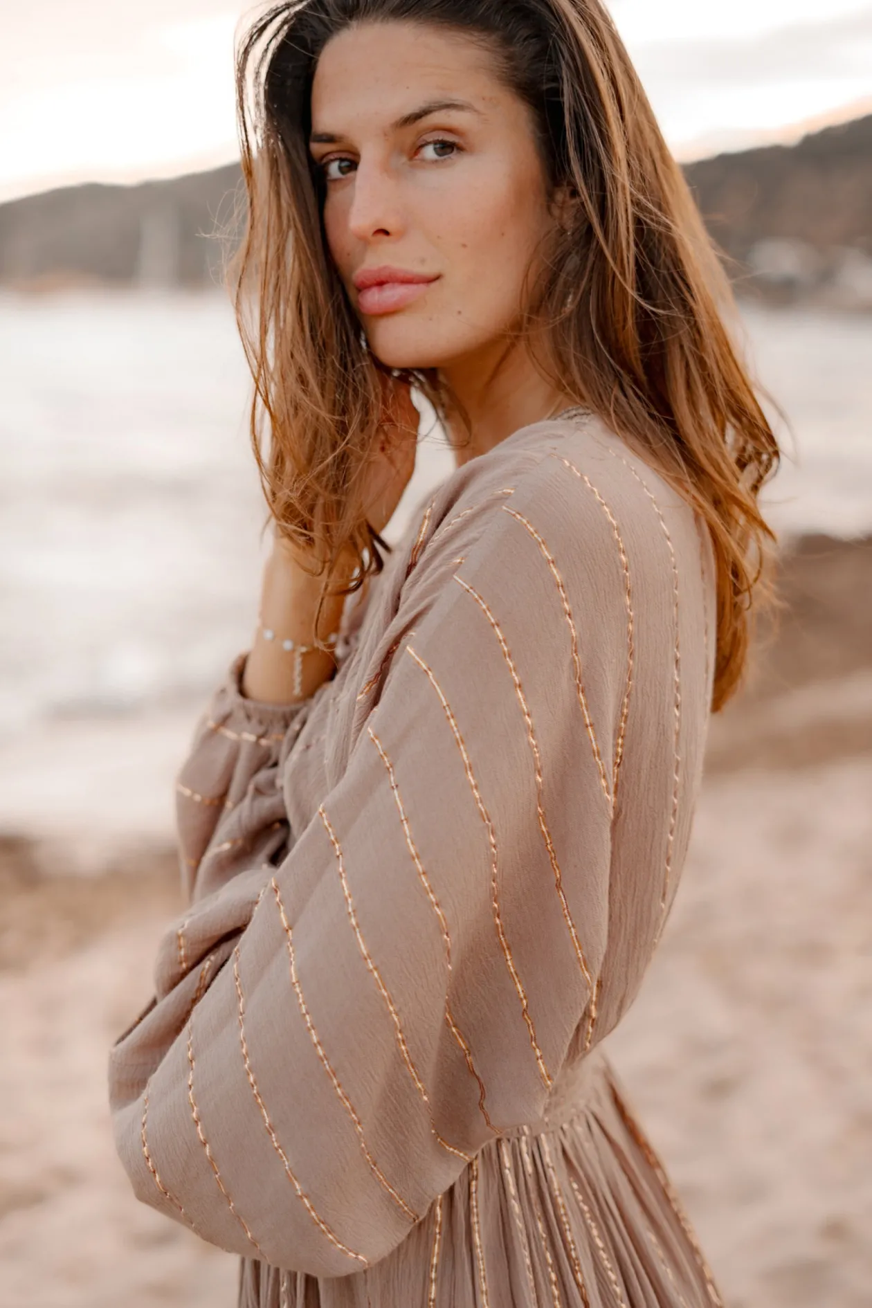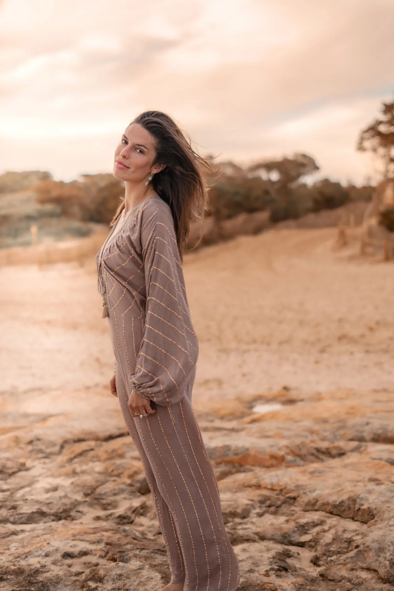 Tritt ein in die Welt des mühelosen Chics mit dem Jumpsuit Emika Light Taupe. Dieser Jumpsuit kombiniert eine luftige Passform mit einem raffinierten Taupe-Farbton und ist perfekt für einen Tag am Strand oder einen Abend im Freien. Trage ihn mit deinen Lieblingssandalen und einem Sonnenhut für den ultimativen Ibiza-Style. Fühle dich frei und stilvoll!