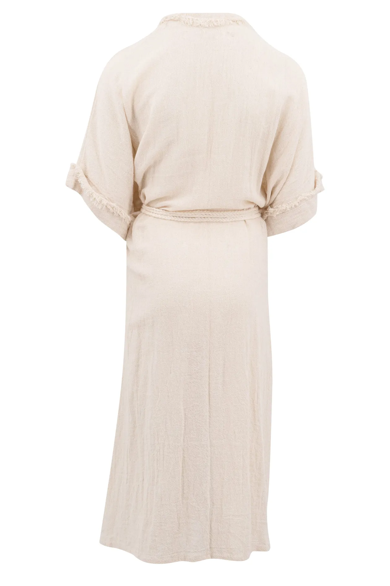 Entfliehe in die Sonne mit dem Kimono Vianne Ecru! Dieser luftige Kimono aus 100% natürlicher Baumwolle ist perfekt, um ihn über deinem Bikini zu tragen. Mit seinen ausgefransten Kanten und den praktischen Seitentaschen bietet er Stil und Komfort zugleich. Trage ihn locker oder befestige ihn mit dem mitgelieferten Gürtel für einen schicken Look.
