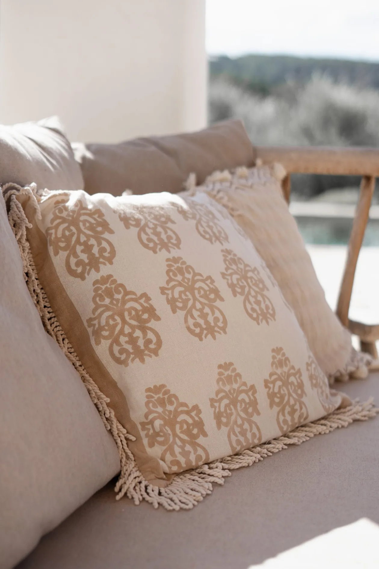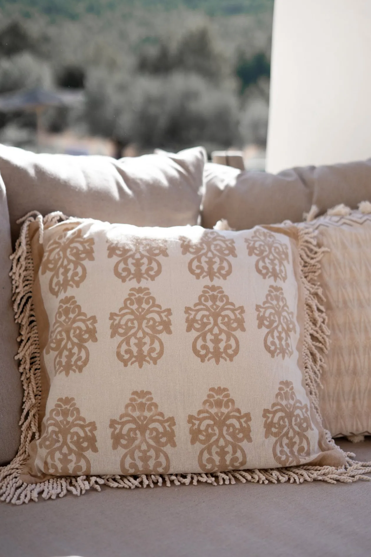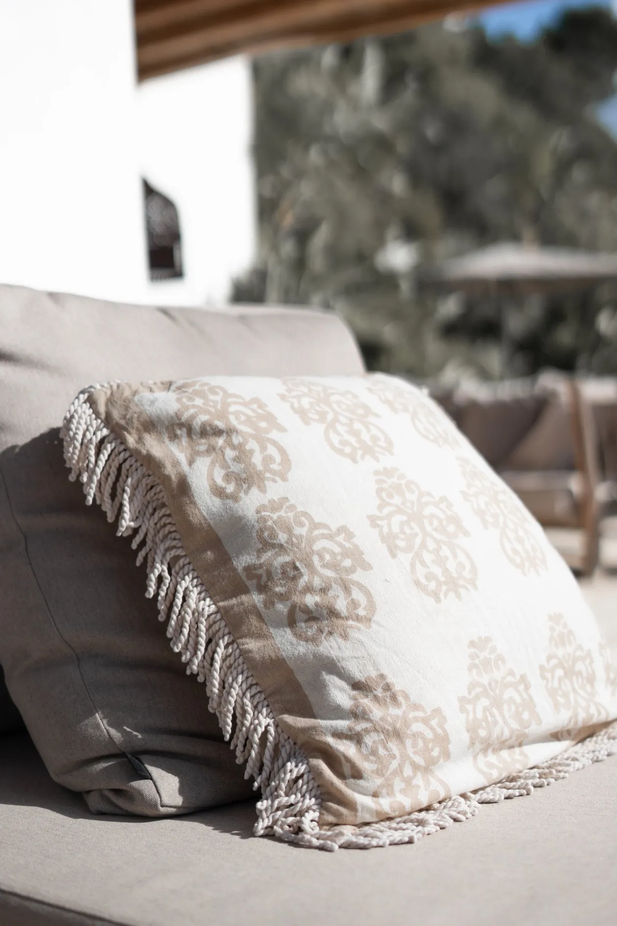 Bring einen Hauch von Boho-Stil in deine Einrichtung mit dem Kissen „Pillow Impresion Mandala“. Dieses wunderschöne Kissen ist mit einem einzigartigen Mandala-Print verziert, der perfekt zu einem trendigen Wohnen passt. Die hübschen Fransen und Quasten an den Rändern verleihen ihm einen verspielten und stimmungsvollen Look. Setze ein Statement in deinem Lebensstil mit diesem bequemen Kissen, das nicht nur dekorativ ist, sondern auch eine gemütliche Atmosphäre in deinem Zuhause schafft.