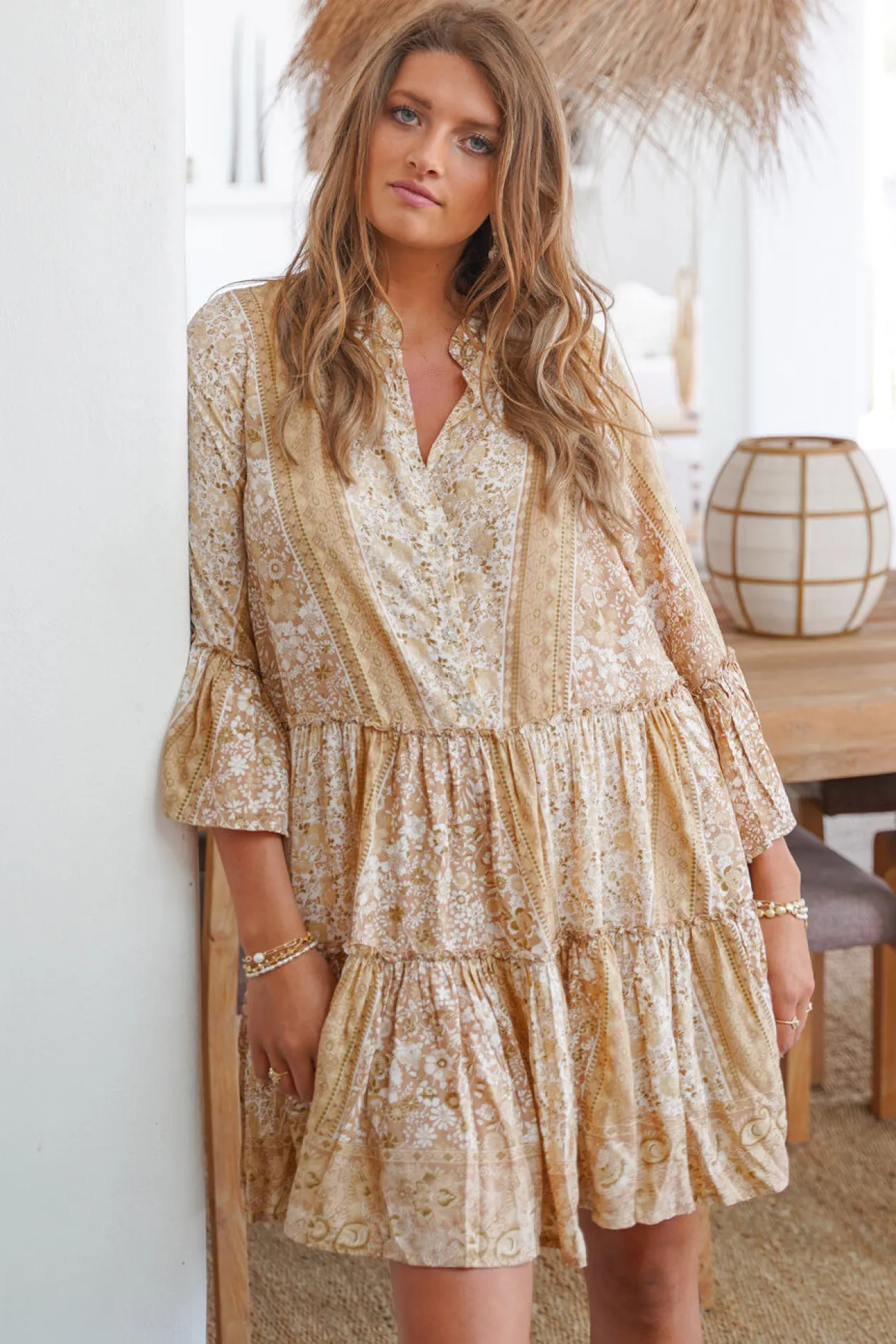 - Hat lange, weite 3/4 Ärmel