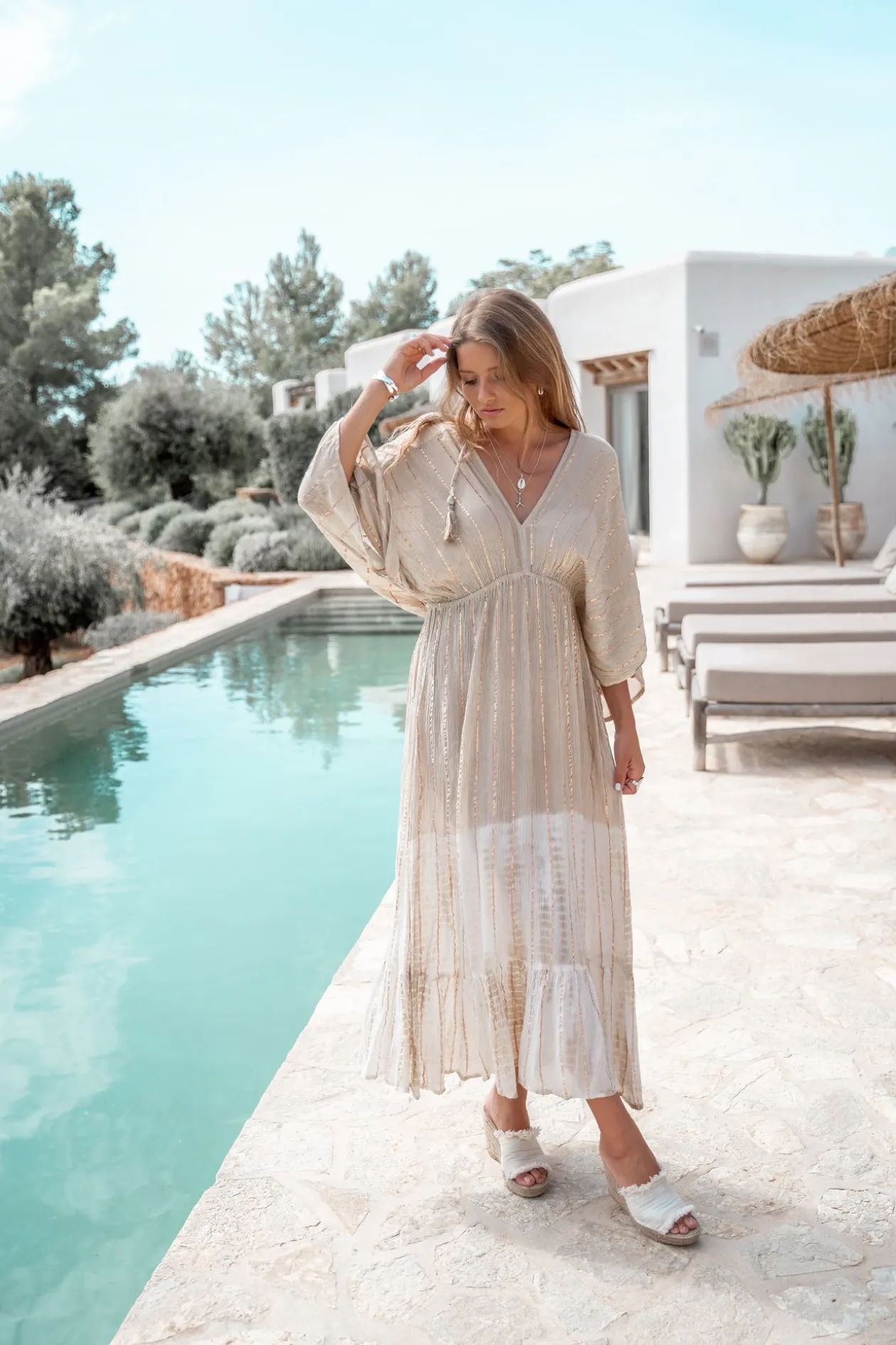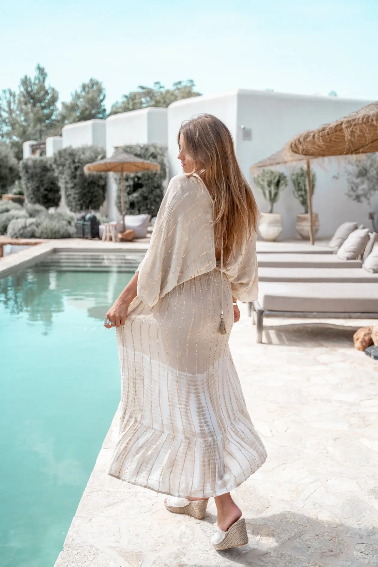 De Dress Emilia Tye Dye Beige/ white is jouw ultieme item voor een vrouwelijke, stoere look. De ademende stof zorgt voor een relaxte pasvorm met een bohemian touch. Draag op een jeansshort of over je bikini voor een dagje strand. Haal deze must-have nu in huis voor jouw bohemian look.