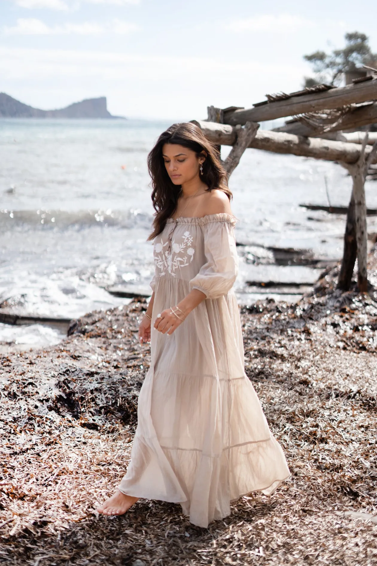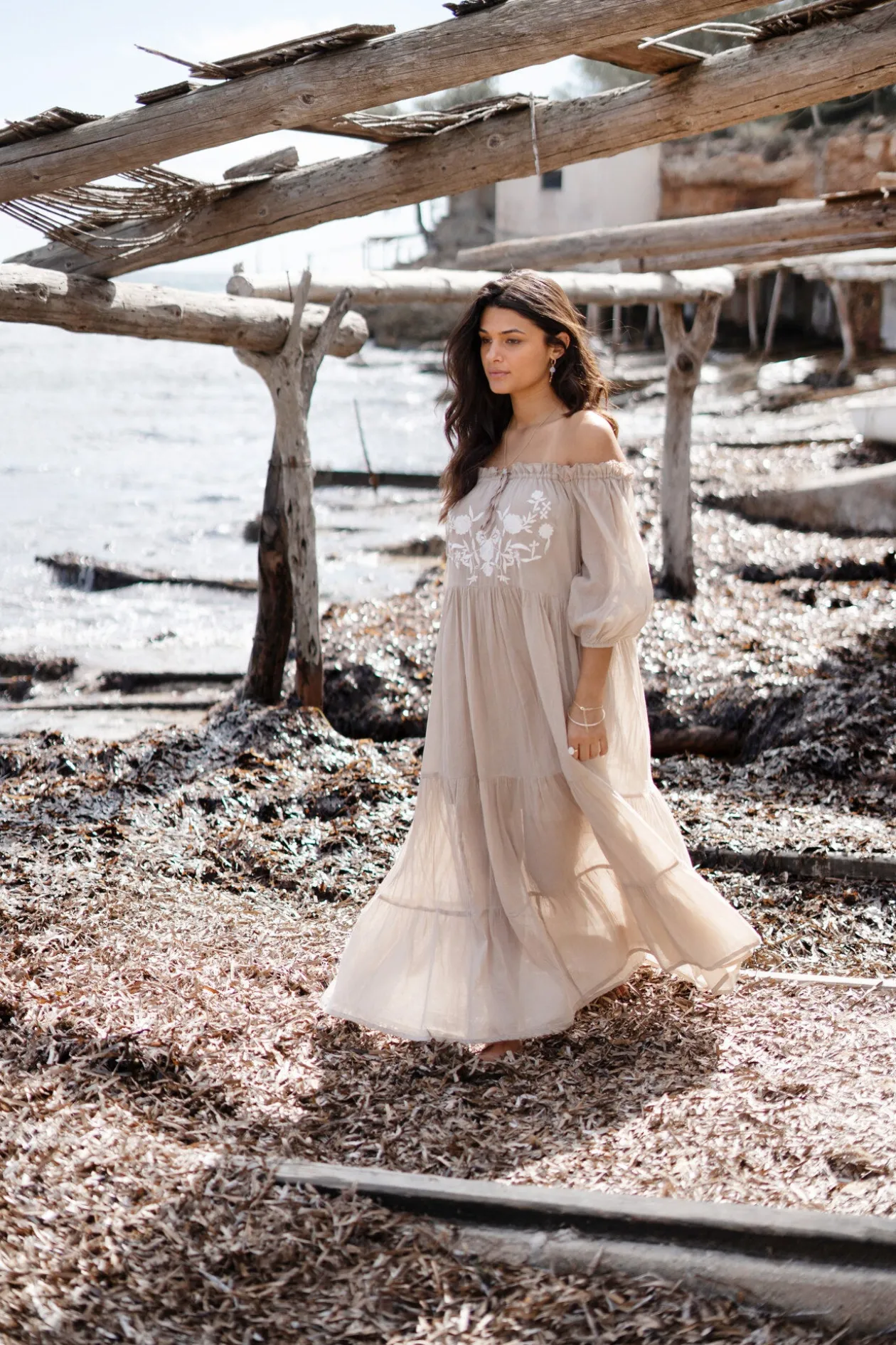 Entdecke das „Dress Peralta Bordado Light Taupe“, ein luftiges Boho-Kleid, das perfekt für sonnige Tage am Strand ist. Das schulterfreie Design betont deine Schultern und sorgt für einen verspielten Look. Das Kleid ist mit zarten Stickereien verziert und verleiht deiner Sommergarderobe einen Hauch von Eleganz. Mach dich bereit, in diesem Must-Have-Outfit zu glänzen!