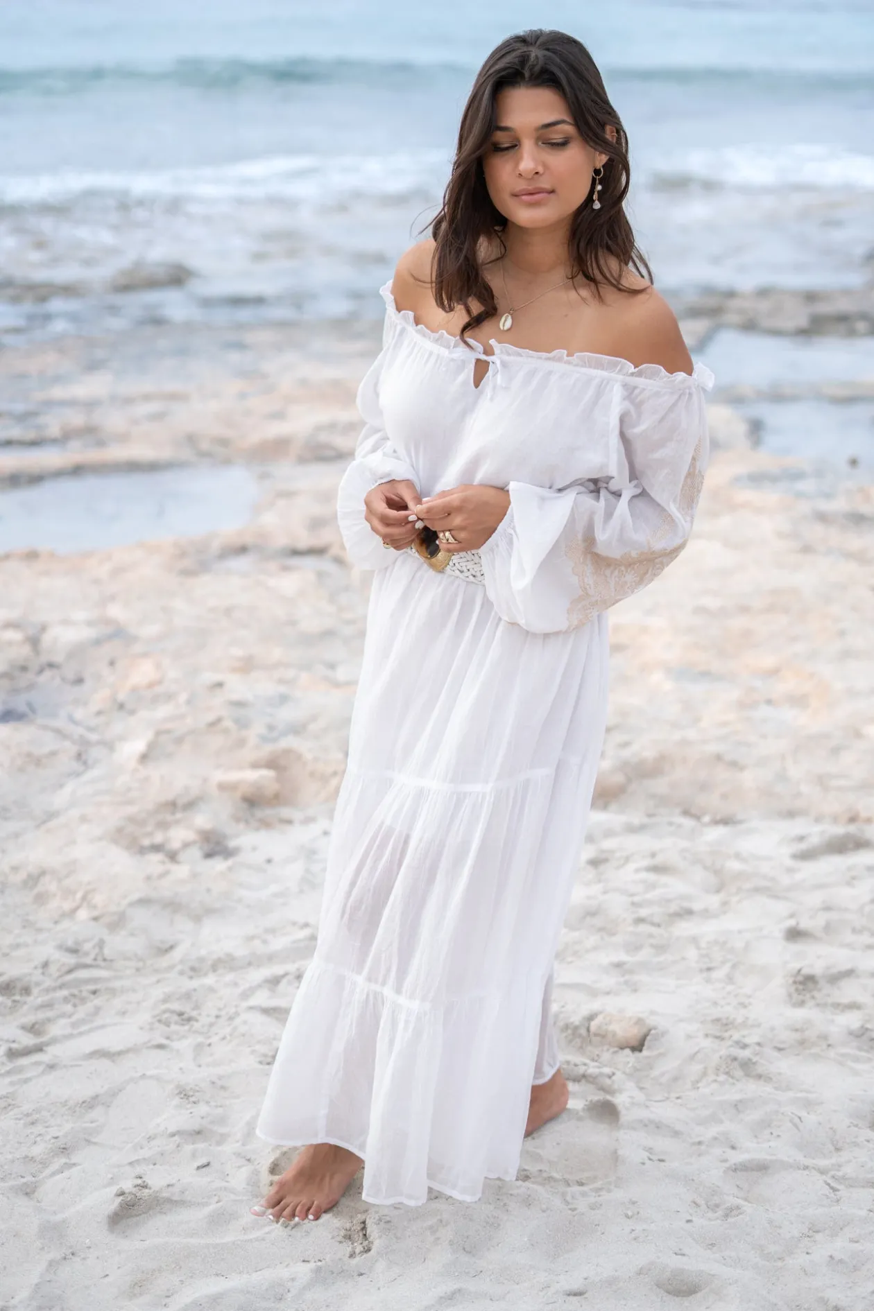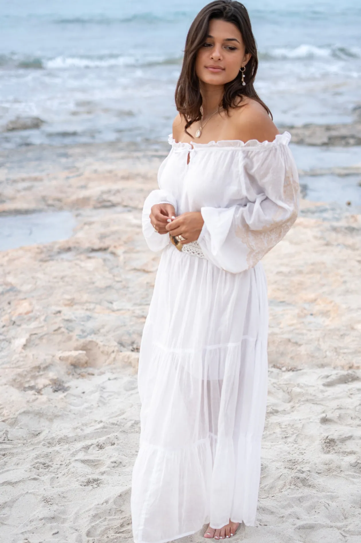 Entdecke das elegante „Dress Peralta Cuenca White“, ein Must-have für deine Garderobe. Dieses wunderschöne schulterfreie Kleid ist mit zarten Stickereien verziert, die es perfekt für jeden Anlass machen. Das leichte Material sorgt für einen bequemen Sitz, während die einzigartigen Details dich ins Rampenlicht rücken. Verleihe deinem Look einen Hauch von Flair mit diesem bezaubernden Kleid!