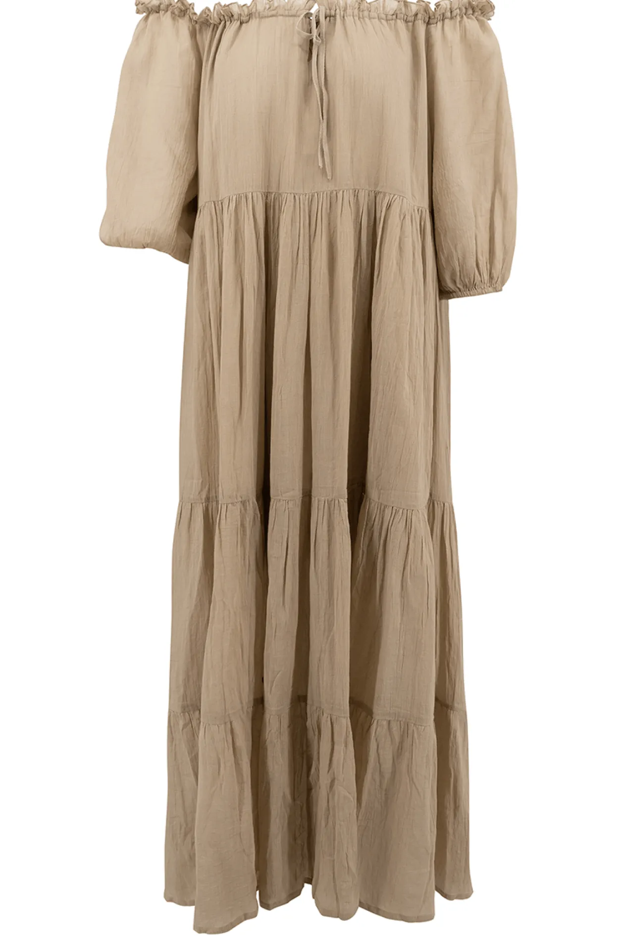 Spüre die Sommerstimmung mit dem Dress Peralta Taupe, einem Boho-Chic Essential, das deine Garderobe sofort aufwertet. Das übergroße Kleid aus 100 % Baumwolle mit überschnittener Schulter und elastischen Details ist perfekt für einen Tag am Strand oder einen Abend im Freien. Kombiniere es mit Sandalen und auffälligem Schmuck für einen einzigartigen Look.