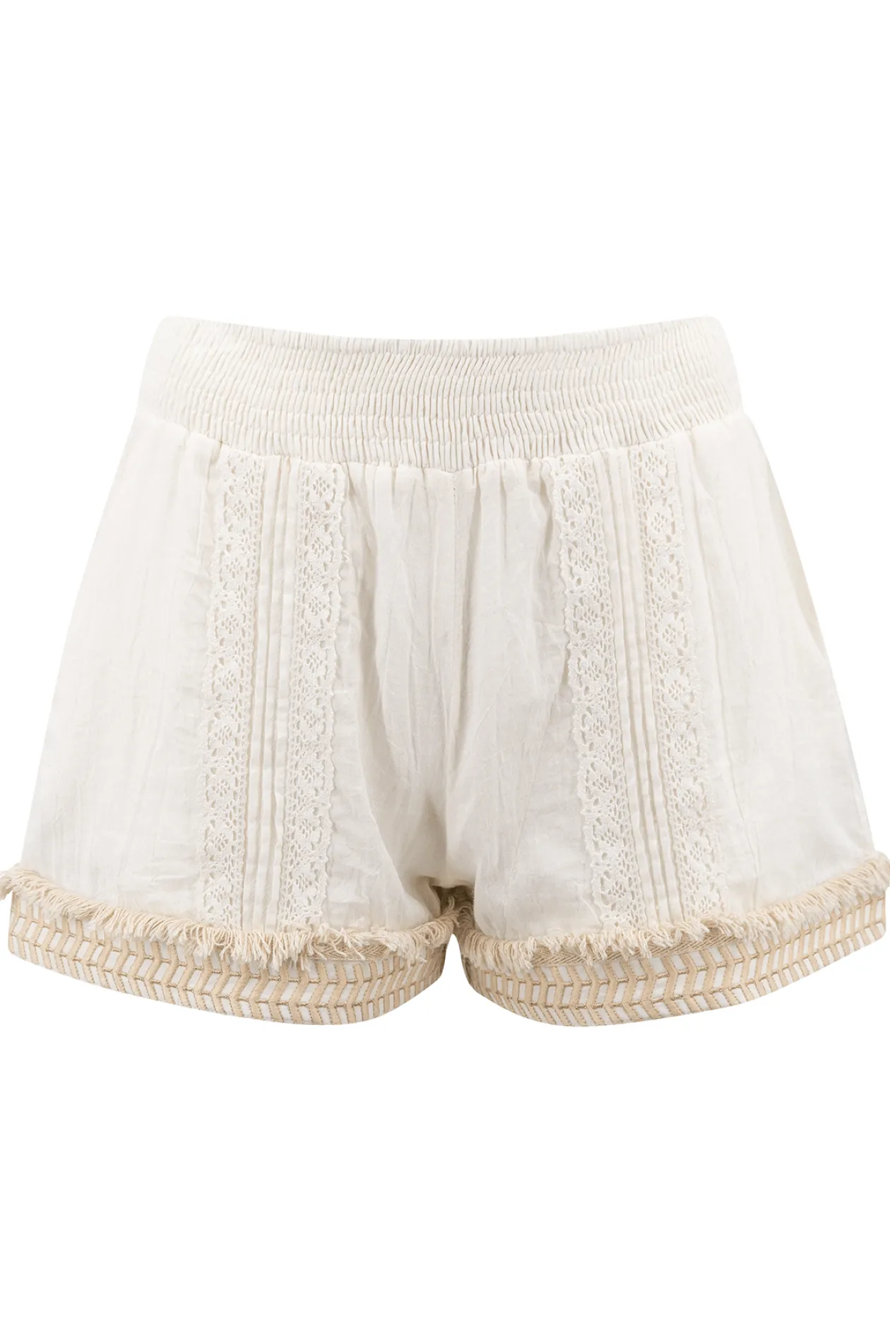 Die Short Pants Sierra Ivory von IBZmode ist ein Sommer-Essential, das mühelos Stil und Komfort vereint. Die aus 100 % Baumwolle gefertigten Shorts bieten mit ihrem elastischen Bund und den Häkeldetails eine perfekte Passform. Trage sie mit einer luftigen Bluse oder einem lässigen Top für einen trendigen Ibiza-Look. Fühle dich frei und modisch!