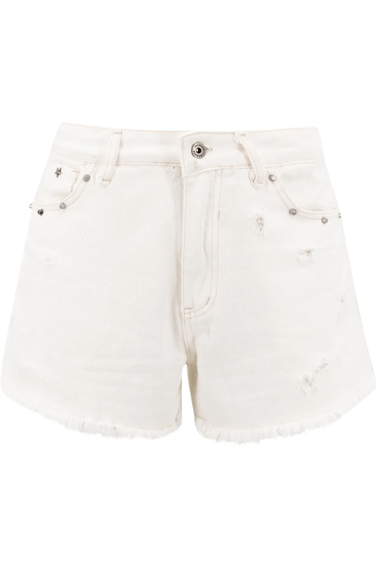 Entdecke die vielseitige Short Neiva Off White, deinen neuen Sommerfavoriten! Diese Shorts kombinieren den Komfort von 100% Baumwolle mit verspielten Rüschendetails und ausgefallenen Metallnieten. Perfekt für einen Tag beim Shoppen oder einen Abend beim Ausgehen. Trage sie mit einem luftigen Top und Sandalen für einen mühelosen, trendigen Look. Umarme deinen einzigartigen Stil!