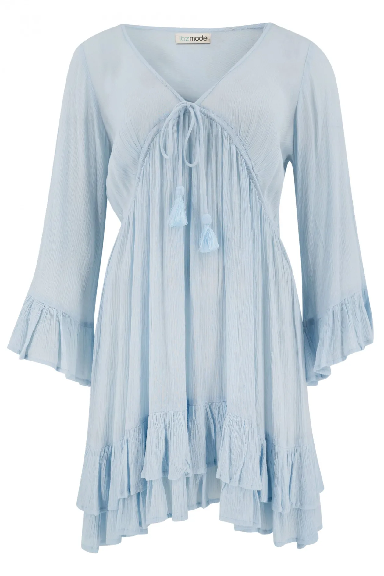 De Short Dress Dantae Flower Pale blue is gemaakt voor zonnige dagen vol stijl. De ademende stof zorgt voor een relaxte pasvorm met een bohemian touch. Mooi met een losvallende kimono of stoer met cowboy boots. Voeg toe aan je collectie en straal in jouw stijl.