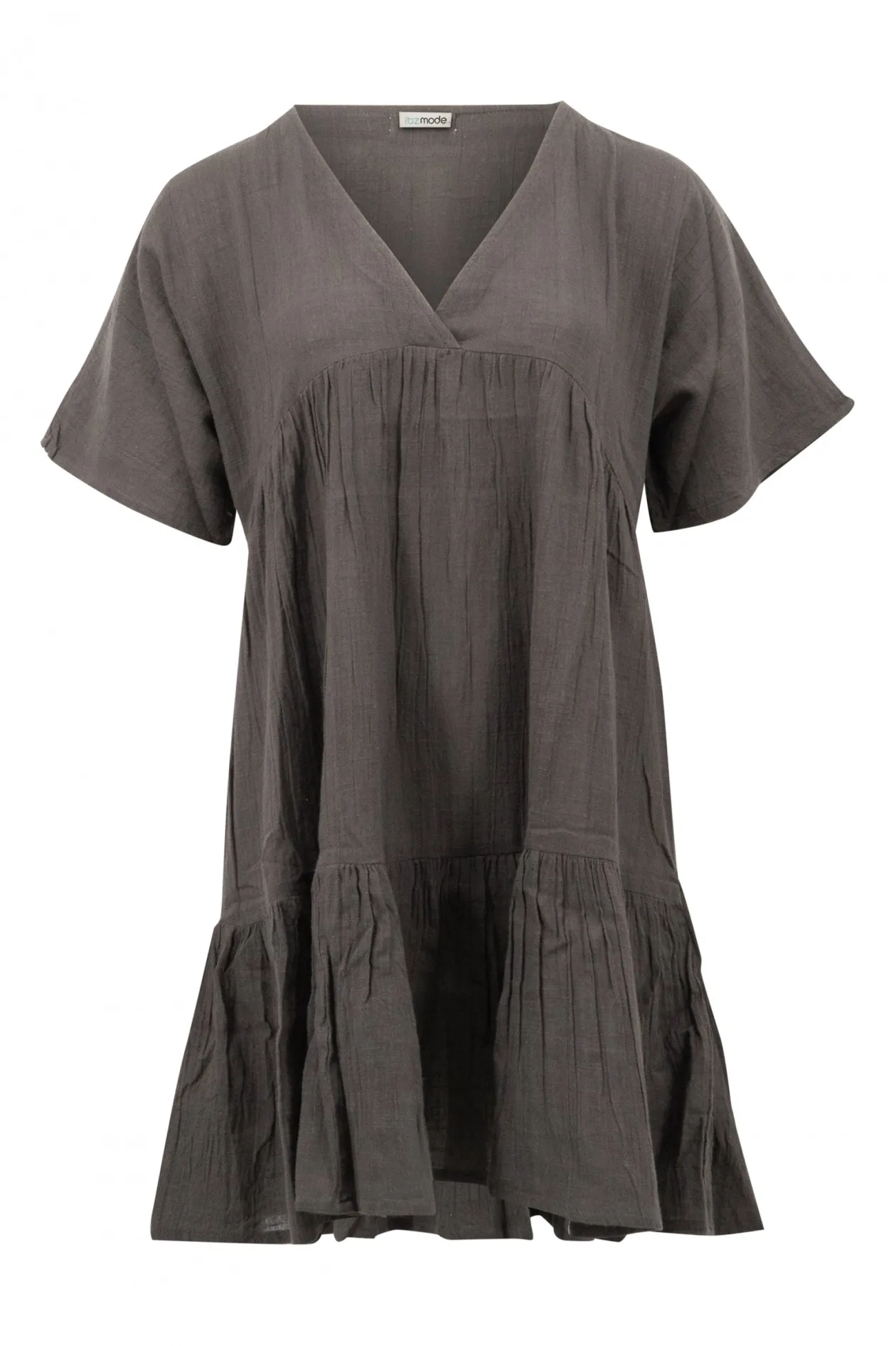 Entdecke das kurze Kleid Elia Plain Anthracite, ein ultimatives Symbol für Ibizas freien Geist. Dieses luftige Kleid aus 100 % Baumwolle mit schmeichelhaftem V-Ausschnitt und weiten Ärmeln ist dein Go-to für jeden Sommertag. Kombiniere es mit Sandalen für einen lässigen Look oder mit Absätzen für eine Nacht. Strahlen Sie und fühlen Sie sich frei!