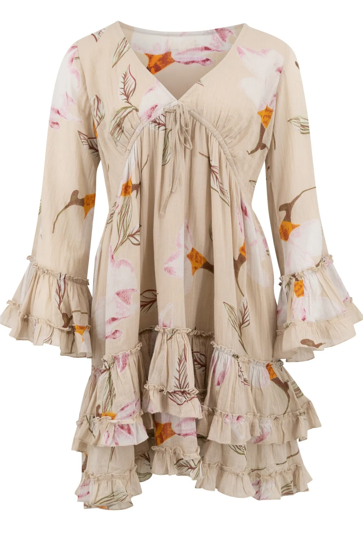 Starte in den Sommer mit dem kurzen Kleid Yola Paradise Sand, einer perfekten Mischung aus Komfort und Stil. Das Kleid aus 100 % Baumwolle mit tiefem V-Ausschnitt und ausgestellten Ärmeln ist ideal für jeden Sommeranlass. Kombiniere es mit Sandalen und einem Sonnenhut für den ultimativen Ibiza-Look. Fühle dich frei und modisch!