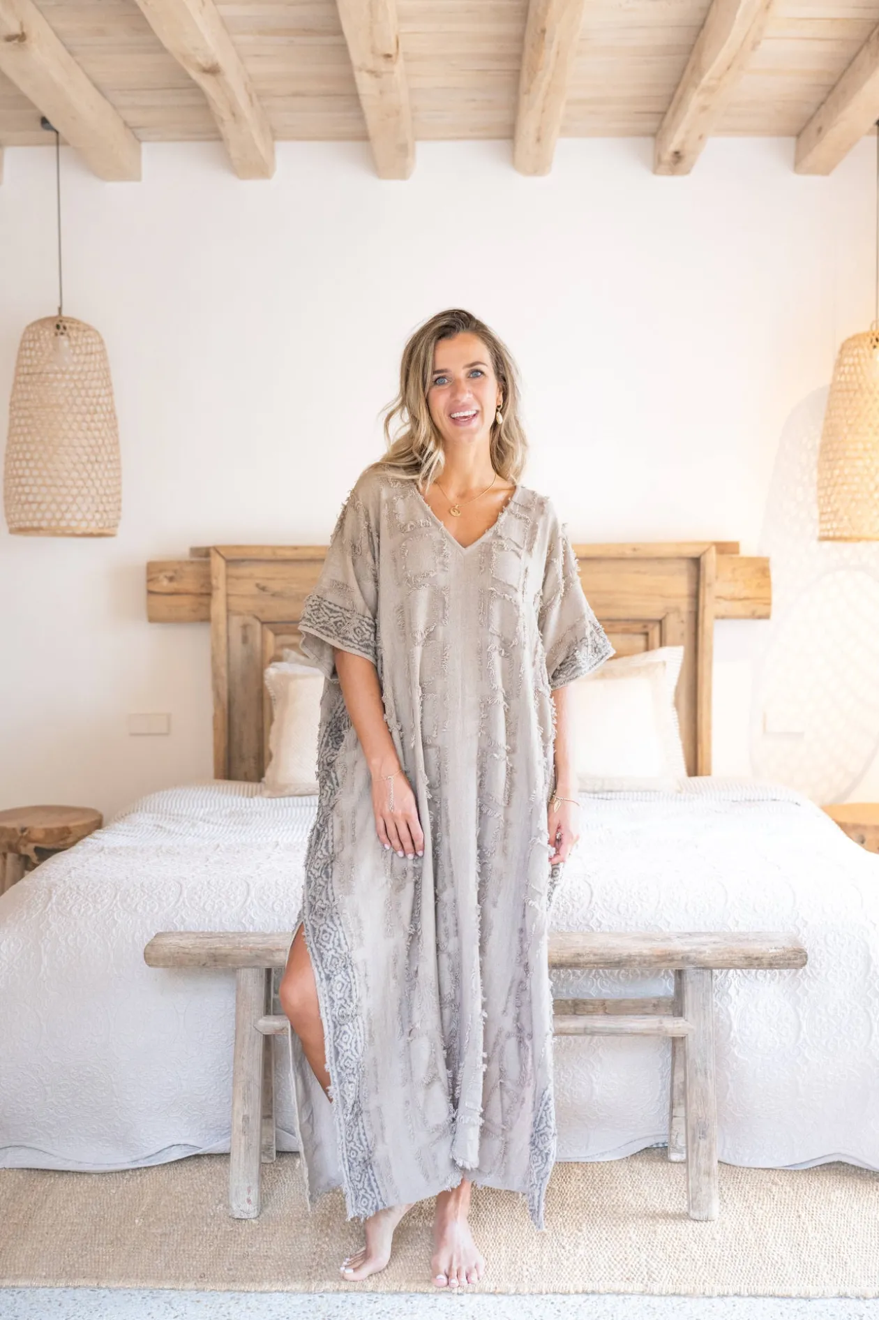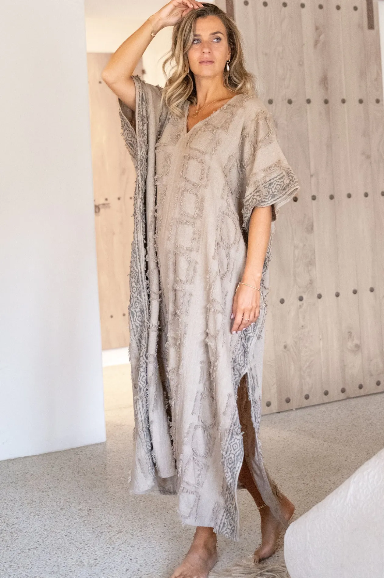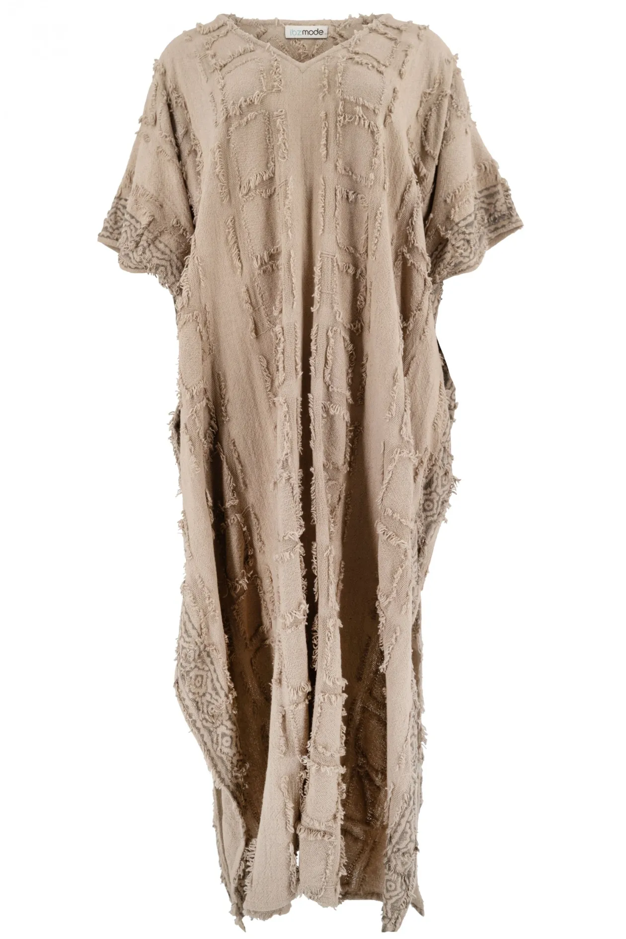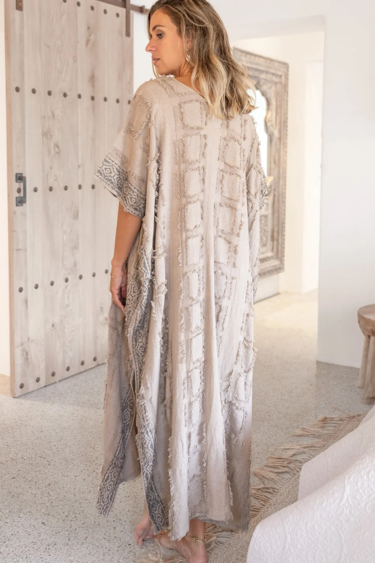 Verleihe deiner Garderobe einen böhmischen Touch mit dem langen Kaftan Kira Scorva Sand. Dieses handgestempelte Kleidungsstück ist perfekt für warme Tage und bietet einen luftigen, bequemen Sitz. Die schöne Sandfarbe und die lockere Passform sorgen für einen raffinierten Look, der sich sowohl für einen Tag am Strand als auch für eine schicke Dinnerparty eignet. Vervollständige deinen Look mit diesem stilvollen Kaftan!