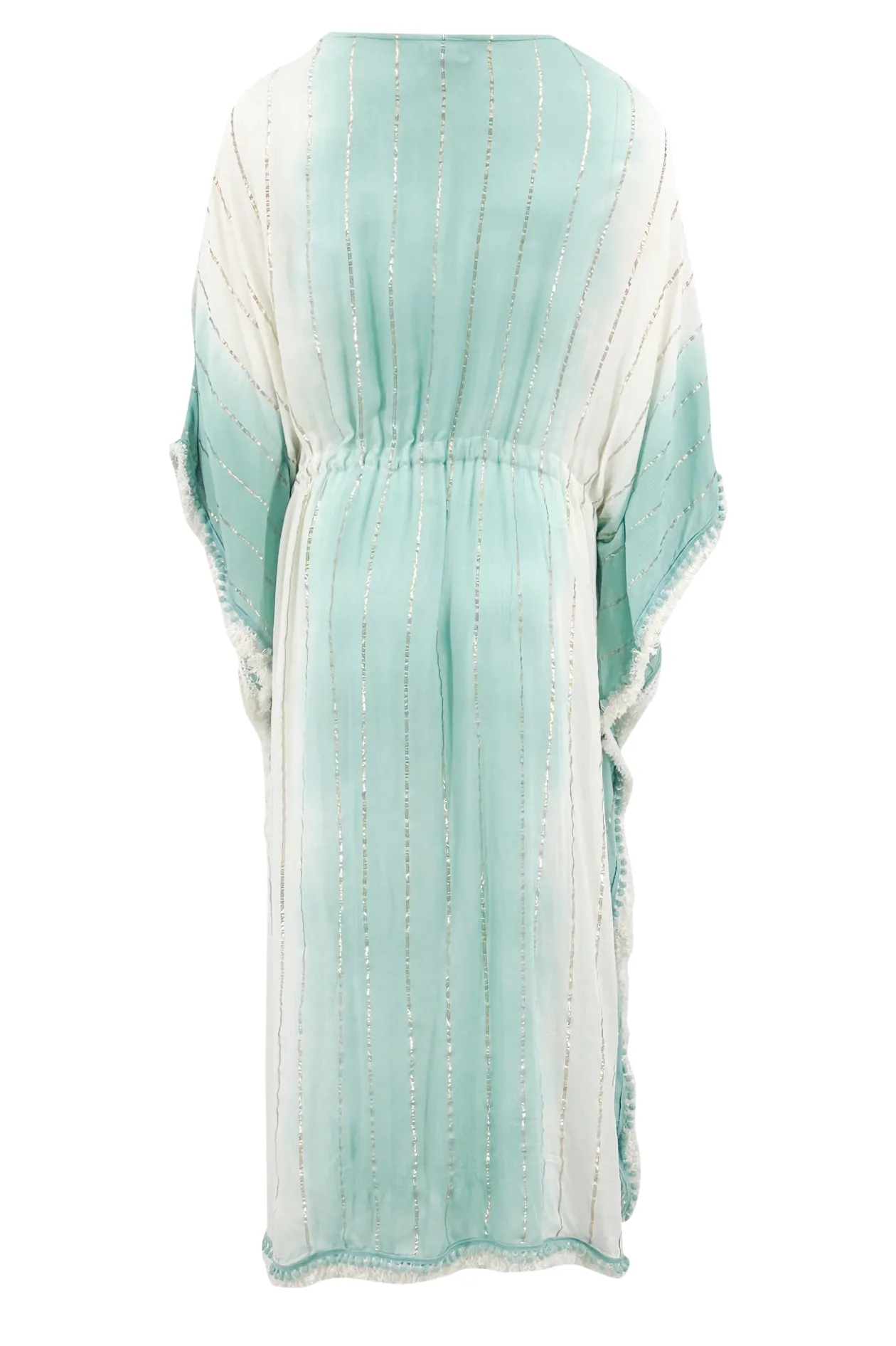 Entfliehe in eine Welt voller Luxus mit dem langen Kimono Aine Lurex White/Aqua. Verziert mit dekorativen Spiegeln und goldenen Lurexfäden, strahlt dieser Kimono pure Eleganz aus. Perfekt für einen Sommertag auf Ibiza: Kombiniere ihn mit deinem Lieblingsbikini oder einem luftigen Kleid und fühle dich wie eine Königin. Umarme deinen einzigartigen Stil!