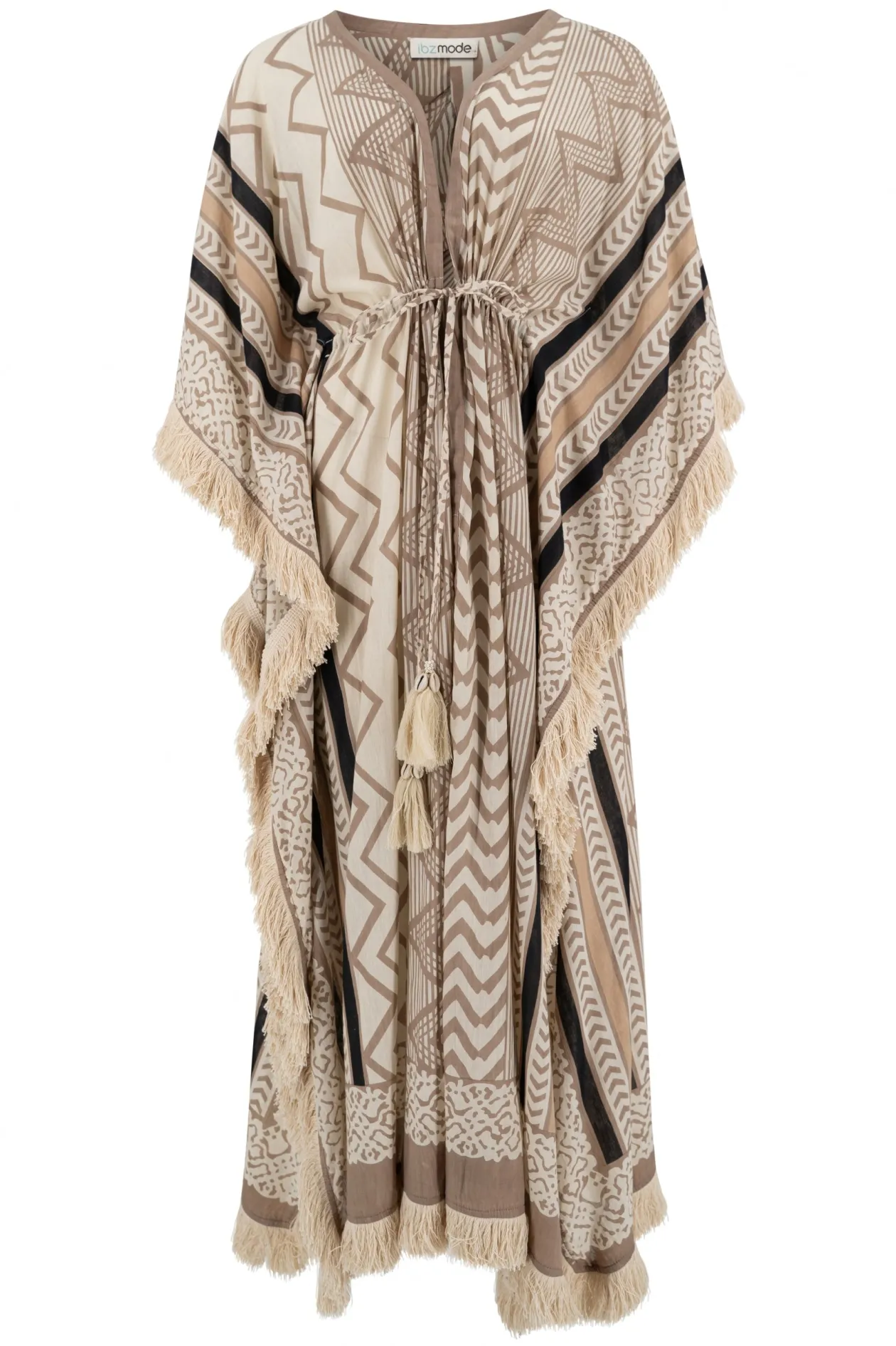 Verleihe deiner Sommergarderobe einen Hauch von Boho-Chic mit dem langen Kimono Impresion Aztec. Dieser wunderschöne Kimono ist mit stilvollen Fransen und Quasten verziert und ist damit die perfekte Ergänzung zu deinem Bikini. Ideal für einen Tag am Strand oder einen entspannten Nachmittag in der Sonne. Trage ihn über deinem Lieblings-Badeoutfit und genieße den Sommer mit Stil!