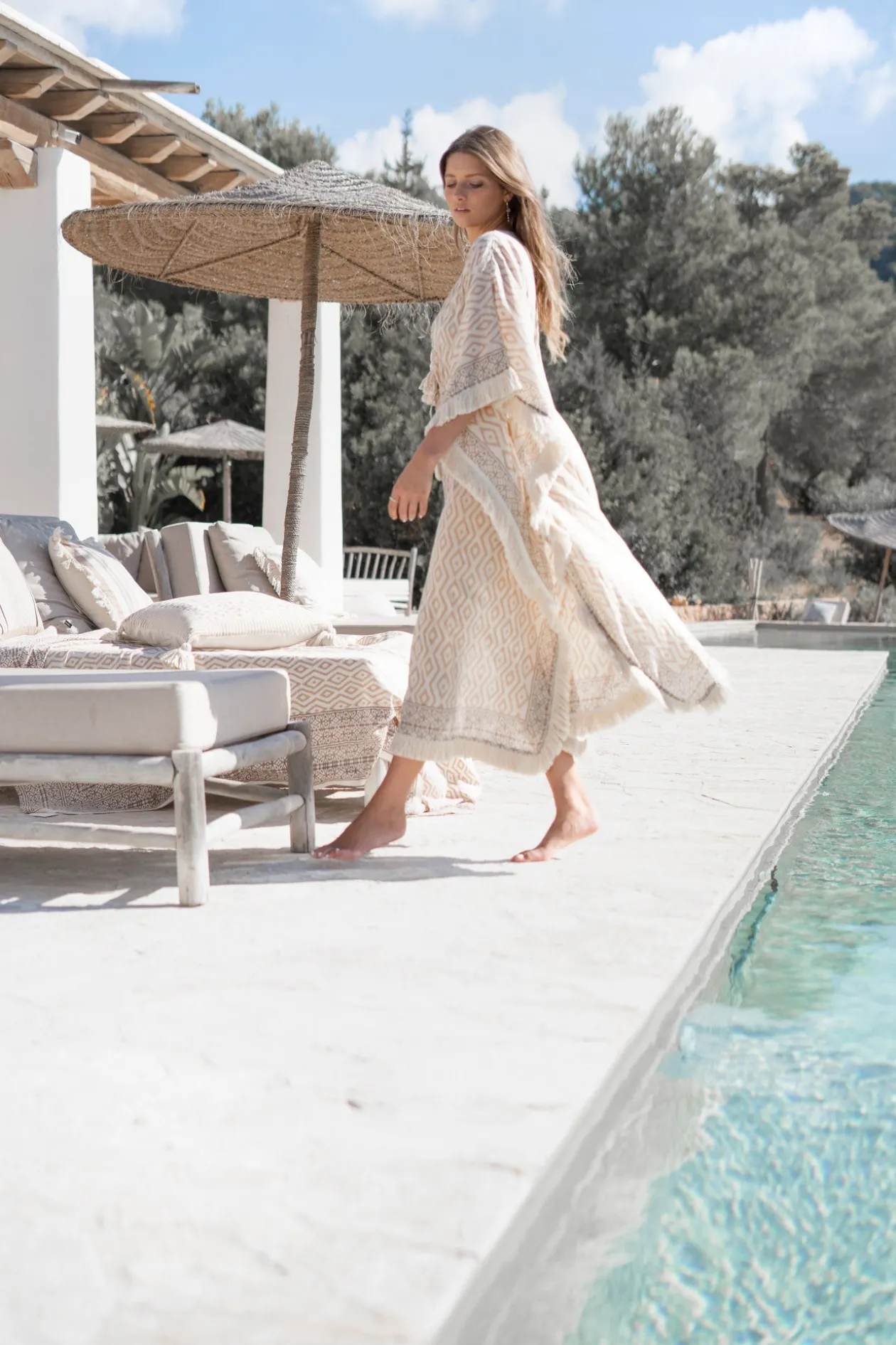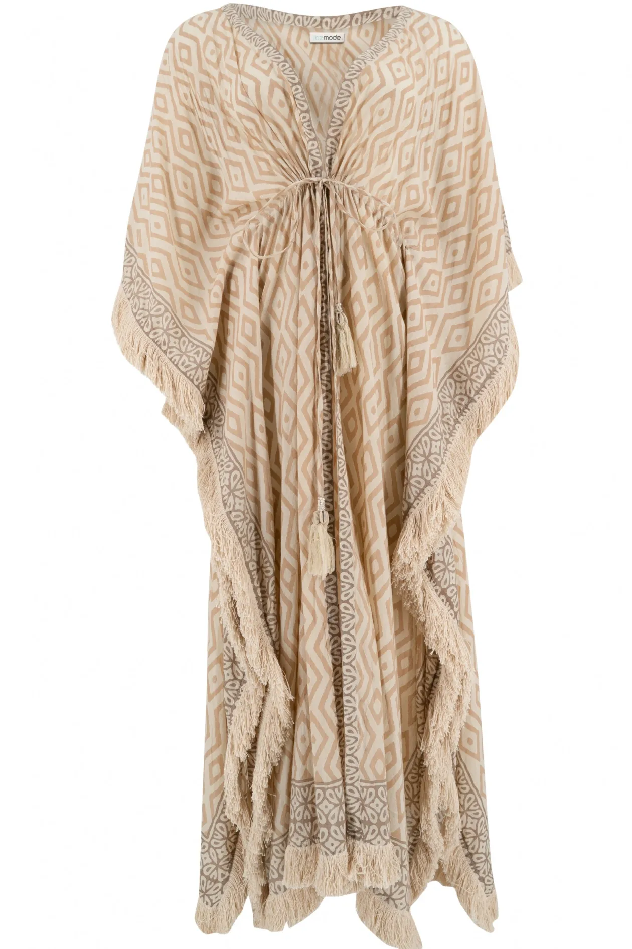Verleihe deinem Sommerlook einen Hauch von Boho-Chic mit dem Long Kimono Impresion Square. Dieses wunderschöne Kleidungsstück ist mit verspielten Fransen und Quasten verziert und eignet sich perfekt, um es für ein stylisches Strandoutfit über deinen Bikini zu drapieren. Ob du entspannte Tage am Pool verbringst oder einen Abendspaziergang machst, dieser Kimono ist die ideale Ergänzung für deine Sommergarderobe. Mach dich bereit, in der Sonne zu glänzen!