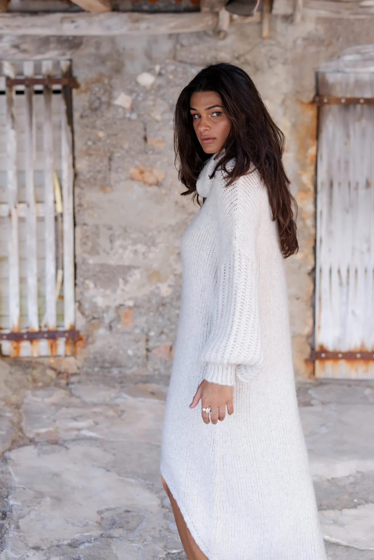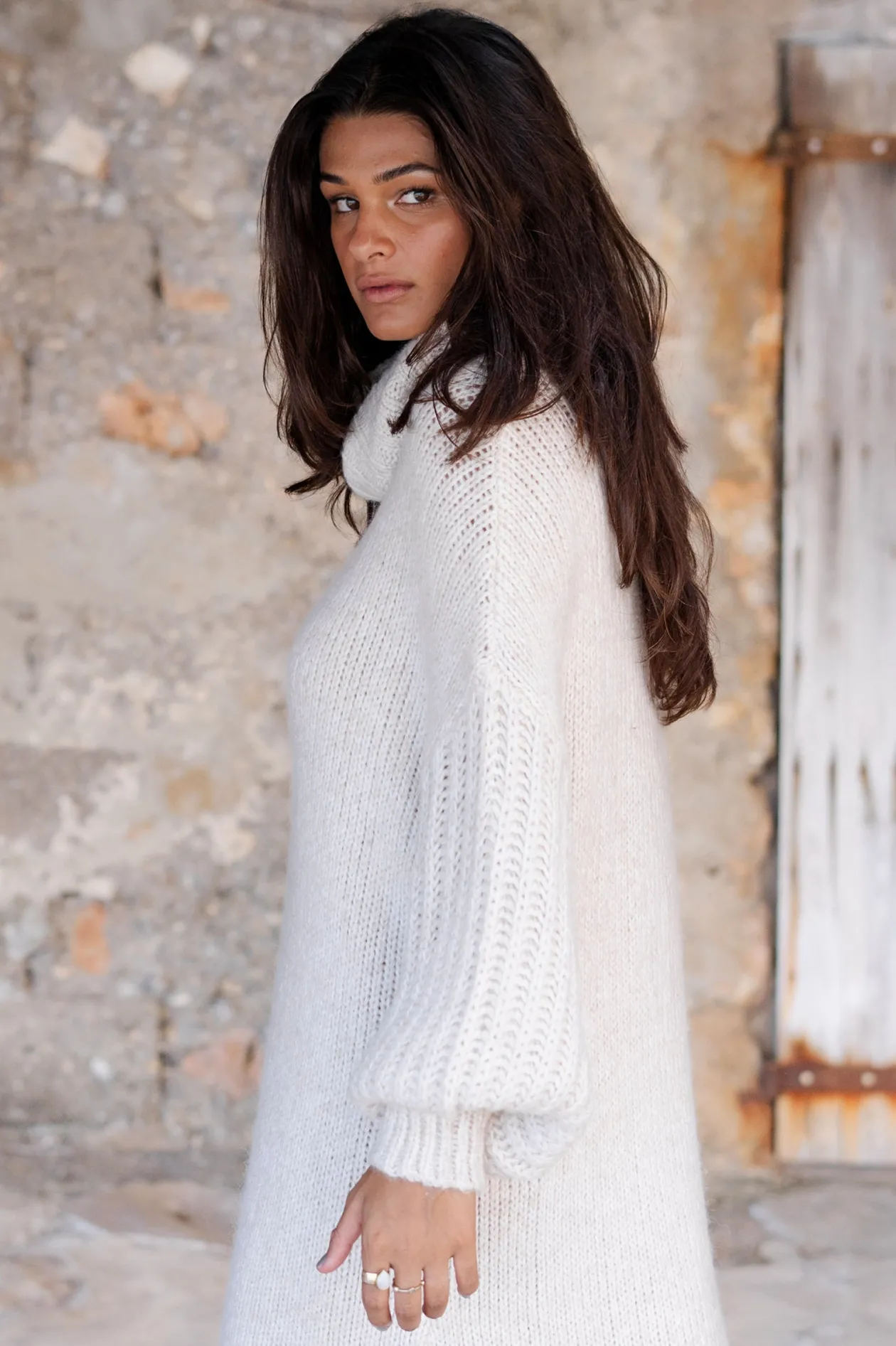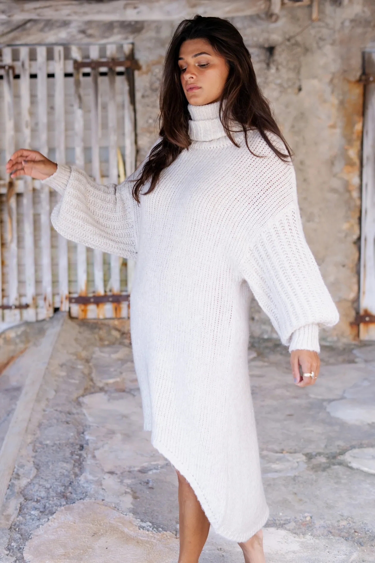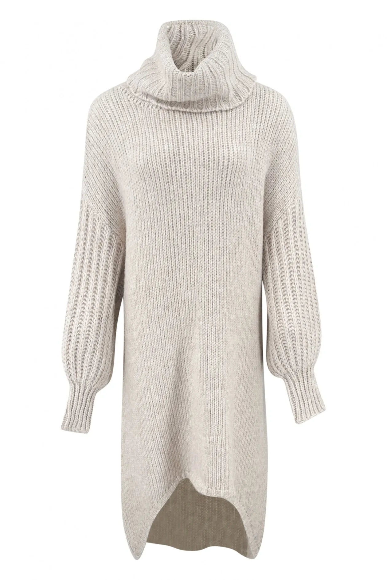 Entdecke die ultimative Kombination aus Komfort und Stil mit dem Long Sweater Dress Bodine Beige. Dieser Grobstrickpullover mit Rollkragen und weiten Puffärmeln ist perfekt für einen gemütlichen Tag im Freien. Trage ihn in Übergröße oder wähle eine Nummer kleiner für einen engeren Look. Fühle dich selbstbewusst und trendy!