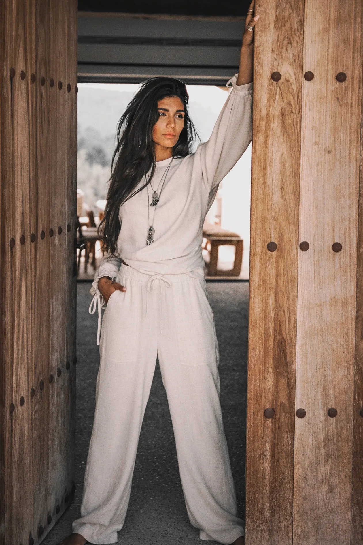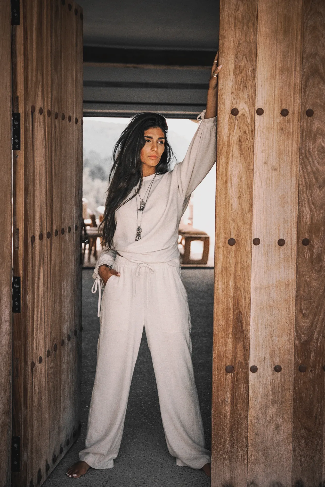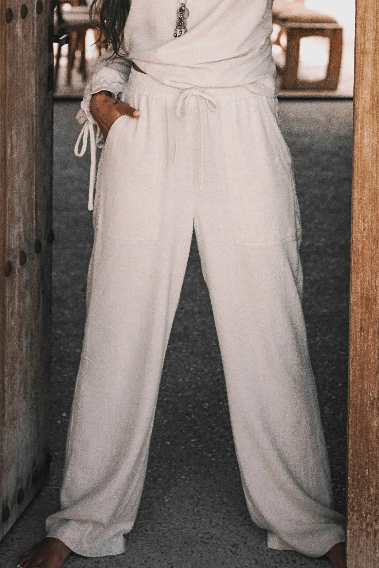 Die Lyana Leinenhose Light Beige ist die ultimative Mischung aus Komfort und Stil, perfekt für jeden Sommertag. Sie ist aus einer atmungsaktiven Mischung aus Viskose und Leinen gefertigt und hat eine entspannte Passform mit einem elastischen Bund, den du enger stellen und binden kannst. Kombiniere sie mit einem luftigen Top und Sandalen für einen mühelos eleganten Look.