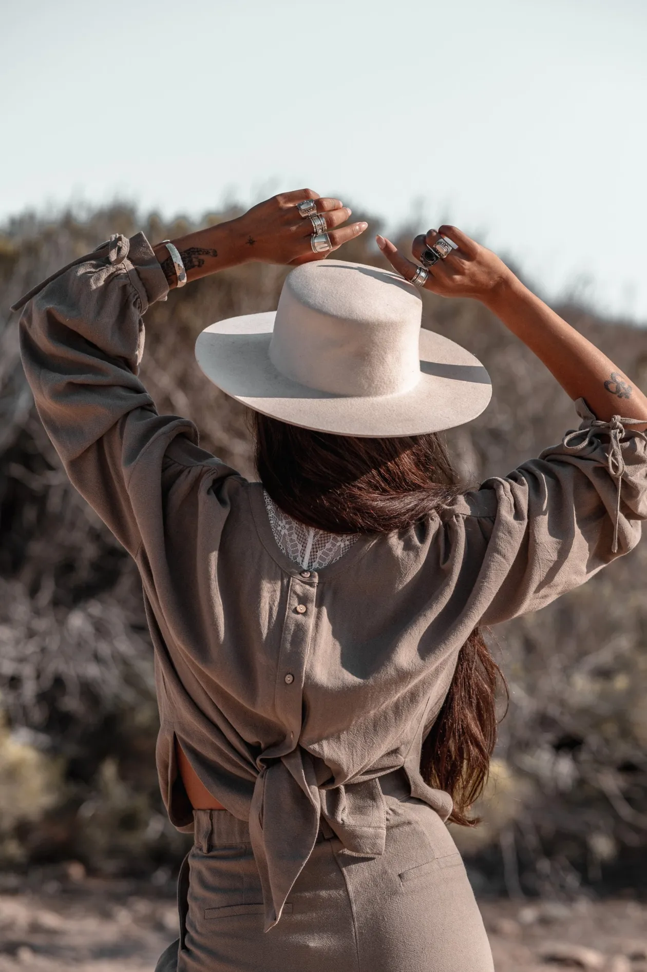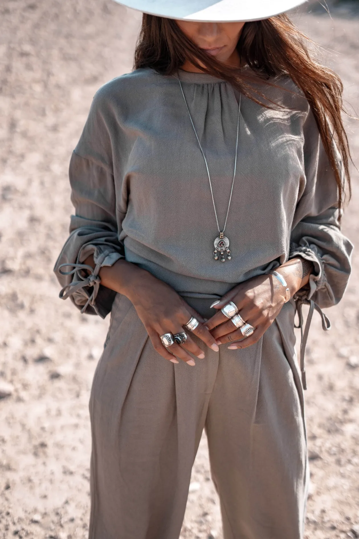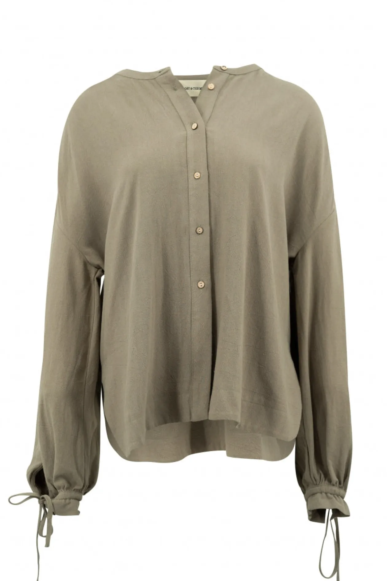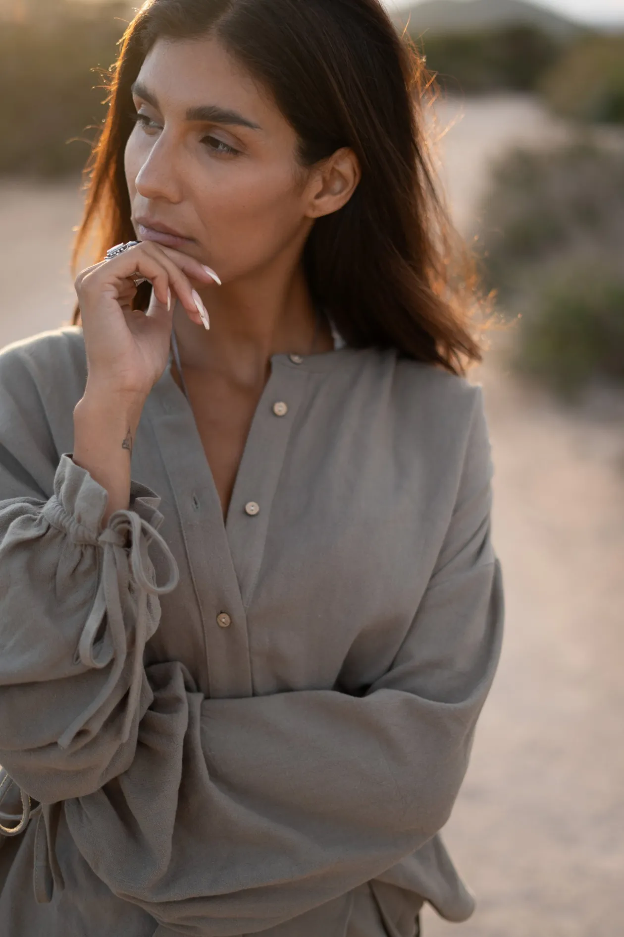 Die Lyvia Bluse Khaki ist ein absoluter Blickfang für jede Garderobe. Mit eleganten Knöpfen von der Brust bis zur Taille, raffinierten Faltendetails an den Schultern und charmanten Schleifen an den Handgelenken bietet diese Bluse die perfekte Mischung aus Stil und Komfort. Trage sie zu einer hoch taillierten Hose für einen raffinierten Look. Strahlen Sie Selbstbewusstsein aus!
