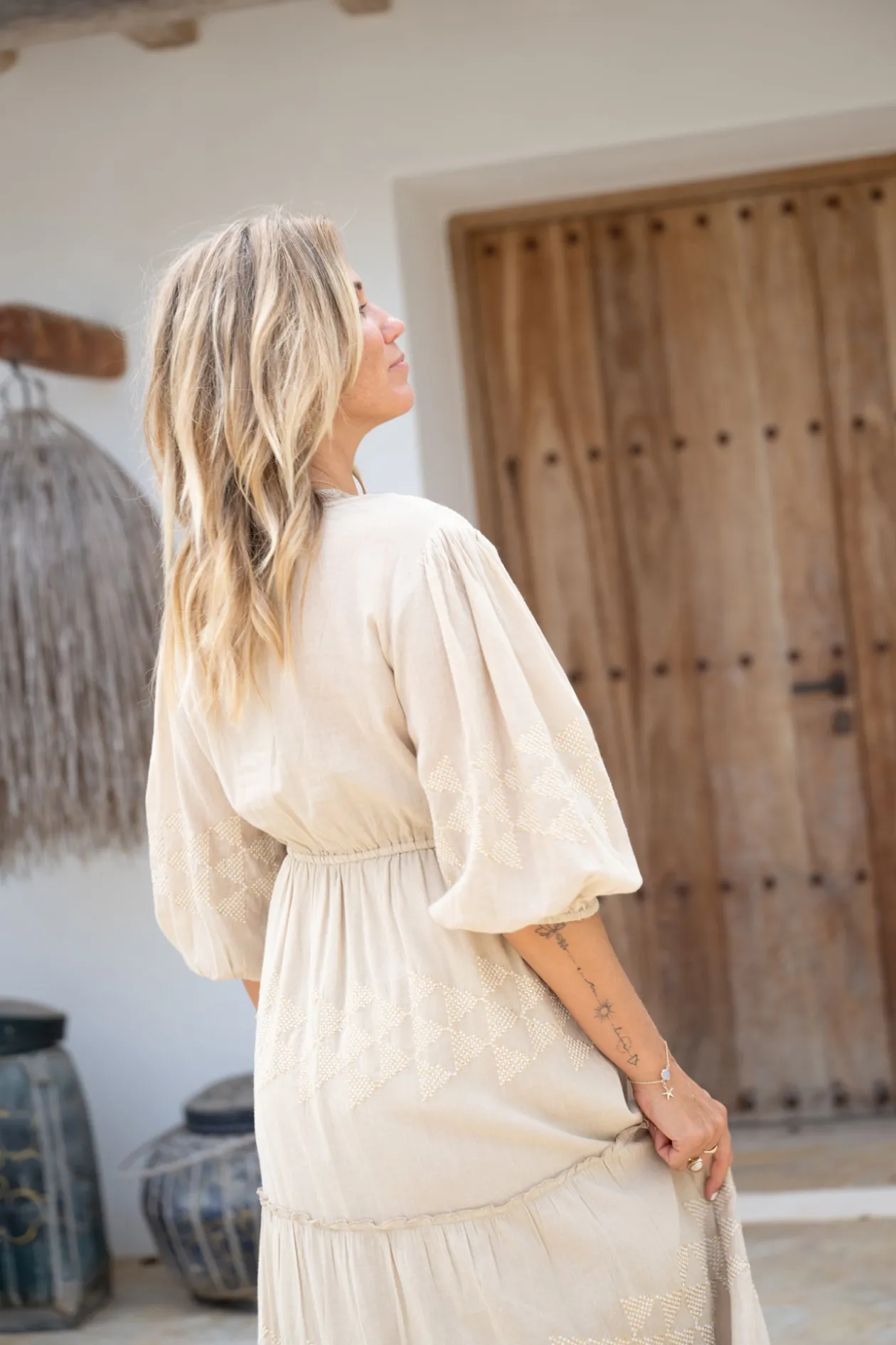 Das Maxikleid Glorio Cuadros Sand ist ein Must-have für jede Fashionista! Dieses Kleid aus luftiger Baumwolle mit charmantem V-Ausschnitt und bestickten Details ist perfekt für einen Tag auf Ibiza. Kombiniere es mit Sandalen und einem Hut für den ultimativen Boho-Look!