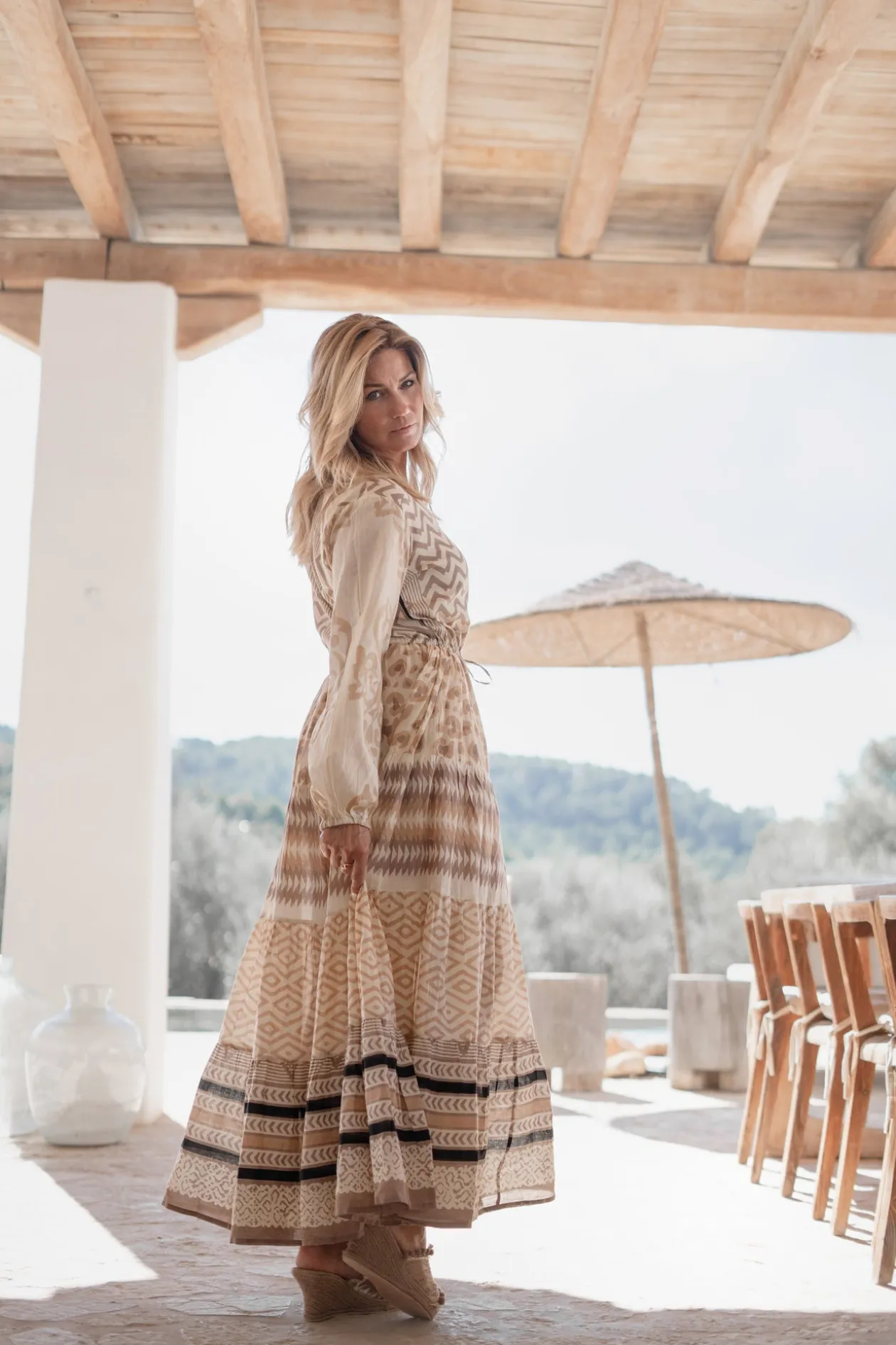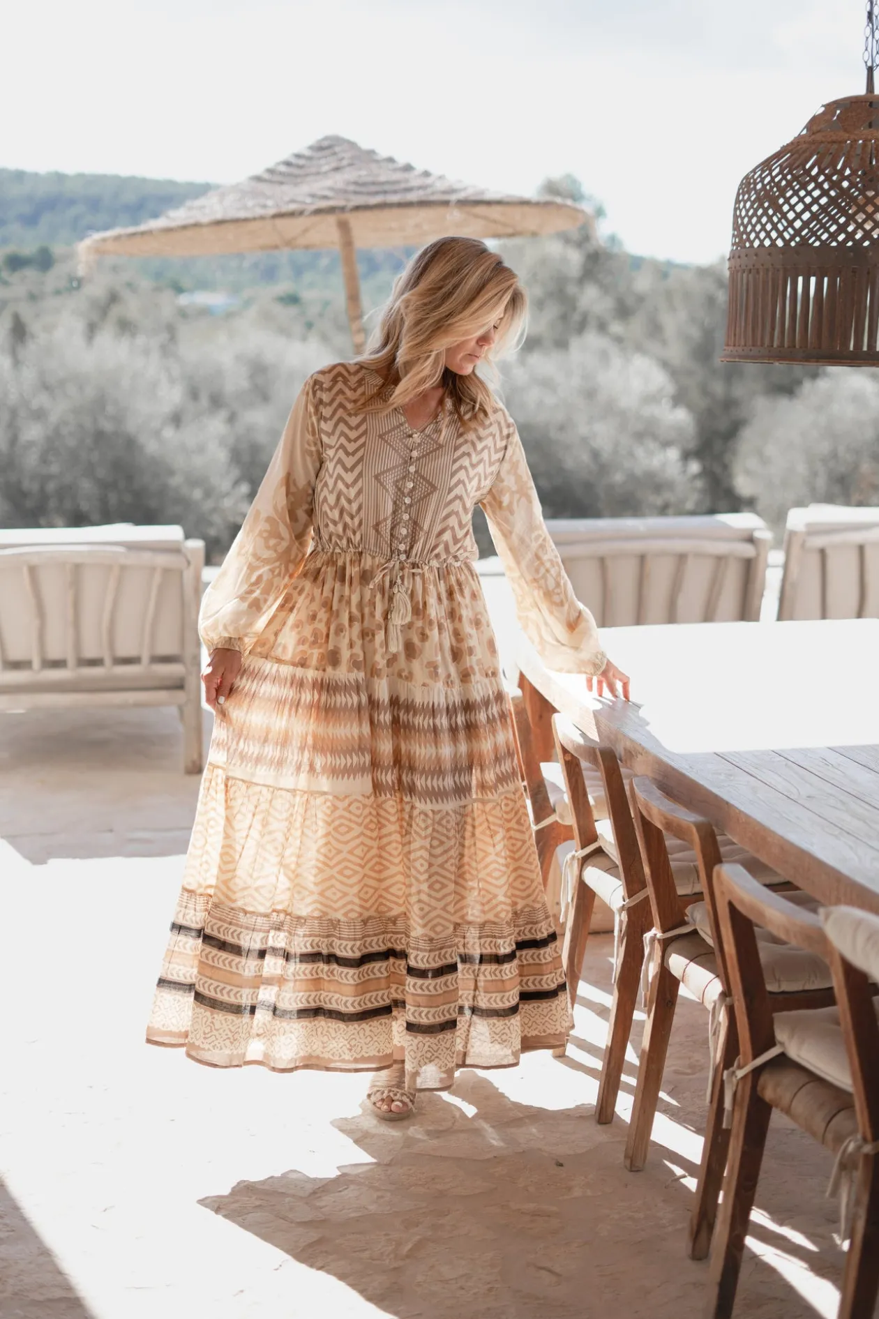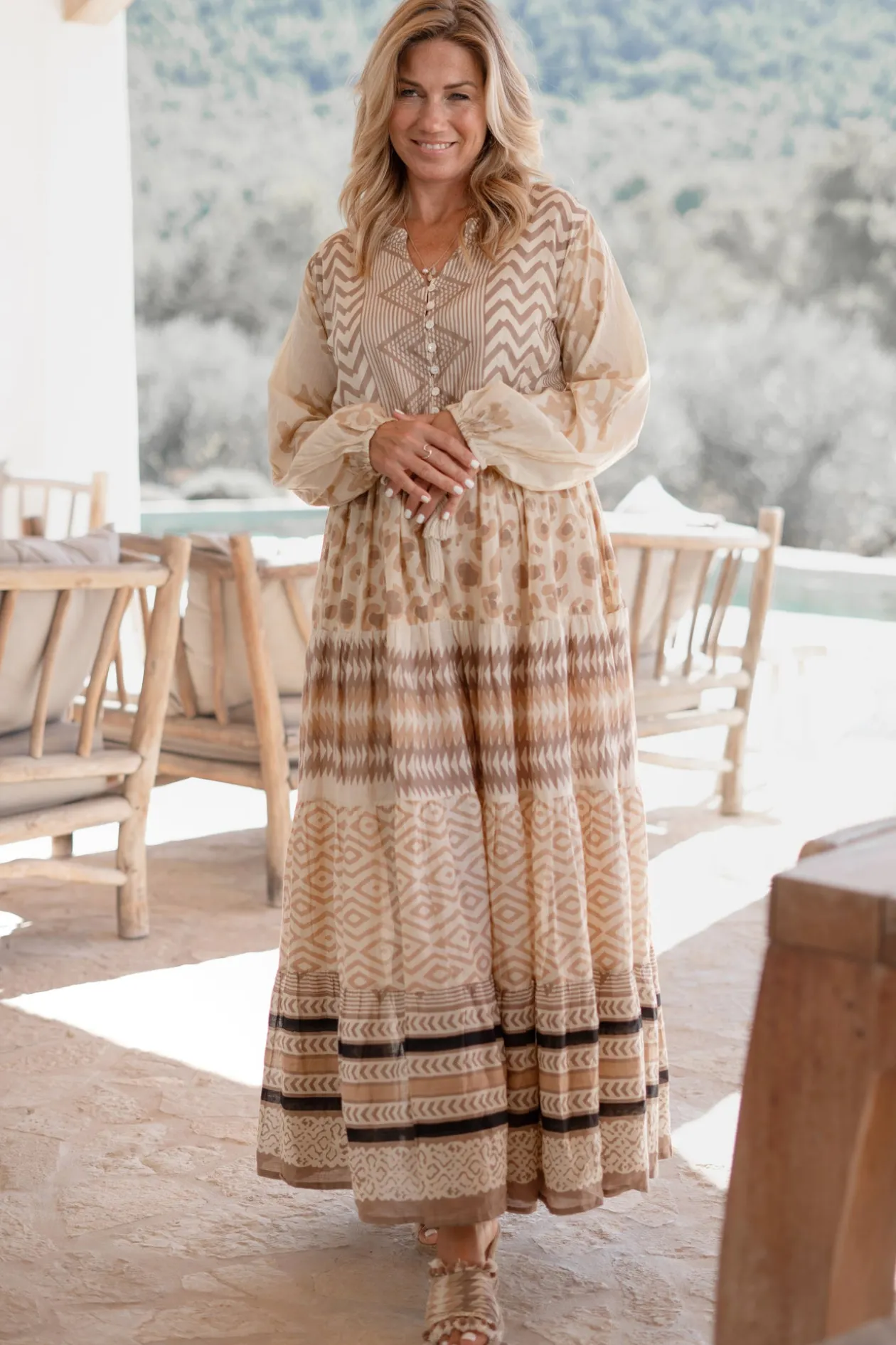 Bringe deine Sommergarderobe auf das nächste Level mit dem Maxikleid Impresion Print. Dieses Boho-Chic-Kleid ist mit stimmungsvollen Fransen und verspielten Quasten verziert, die perfekt zu deinem Lieblingsbikini passen. Ideal für einen Tag am Strand oder eine Sommerparty, bietet dieses Maxikleid sowohl Komfort als auch Stil. Fühle dich frei und modisch mit diesem Must-have für heiße Tage!