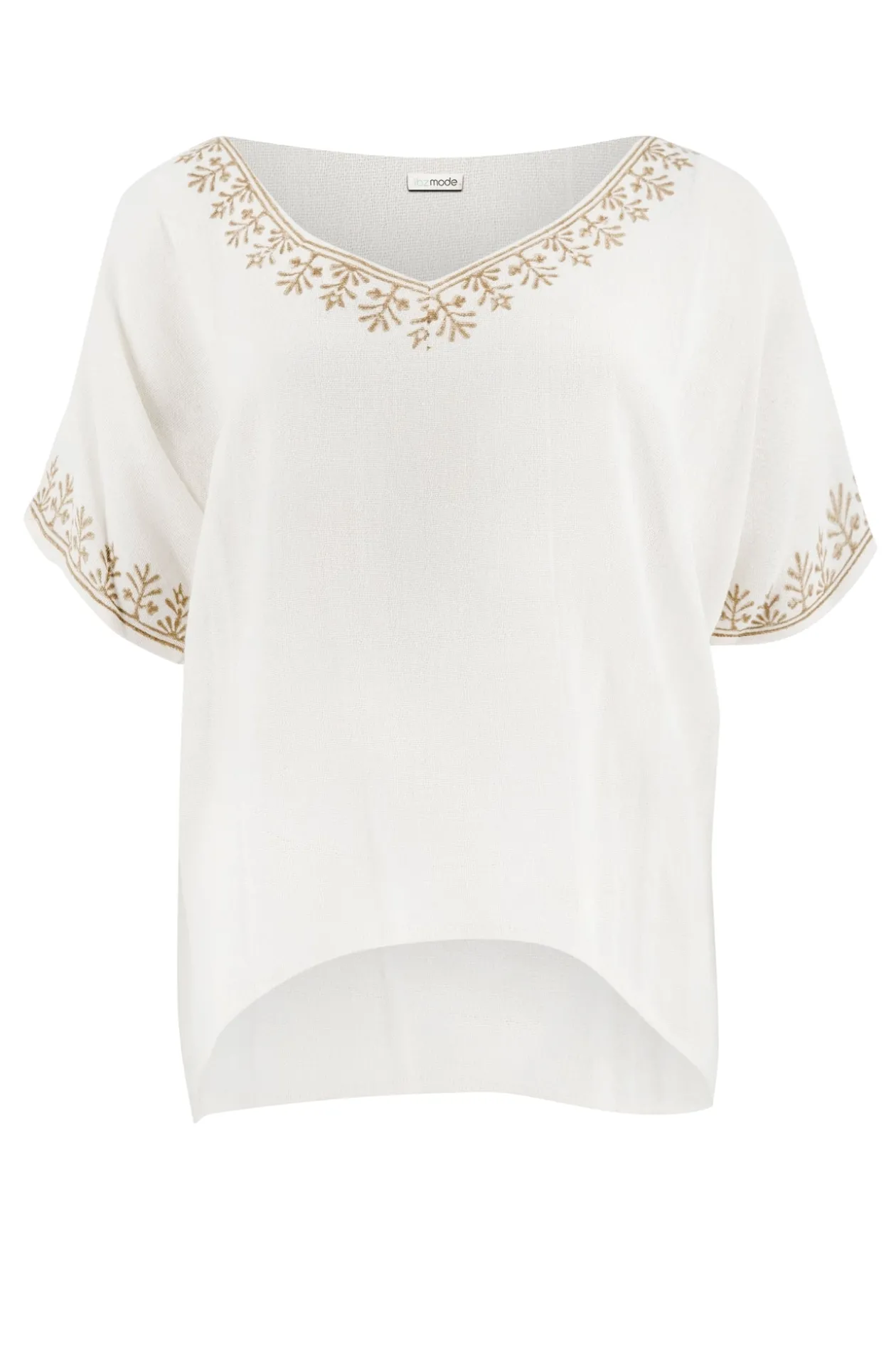 Bring einen Boho-Touch in deinen Look mit dem Top Emilia Scorva White. Diese handgestempelte Bluse ist aus luftigem, atmungsaktivem Stoff gefertigt und eignet sich perfekt für jede Gelegenheit. Die zeitlose weiße Farbe und die fließende Passform sorgen für einen eleganten Look, während die einzigartigen Details deinem Outfit ein trendiges Flair verleihen. Trage es lässig mit Jeans oder stilvoll mit einem Rock. Vervollständige deine Garderobe mit diesem vielseitigen Oberteil!