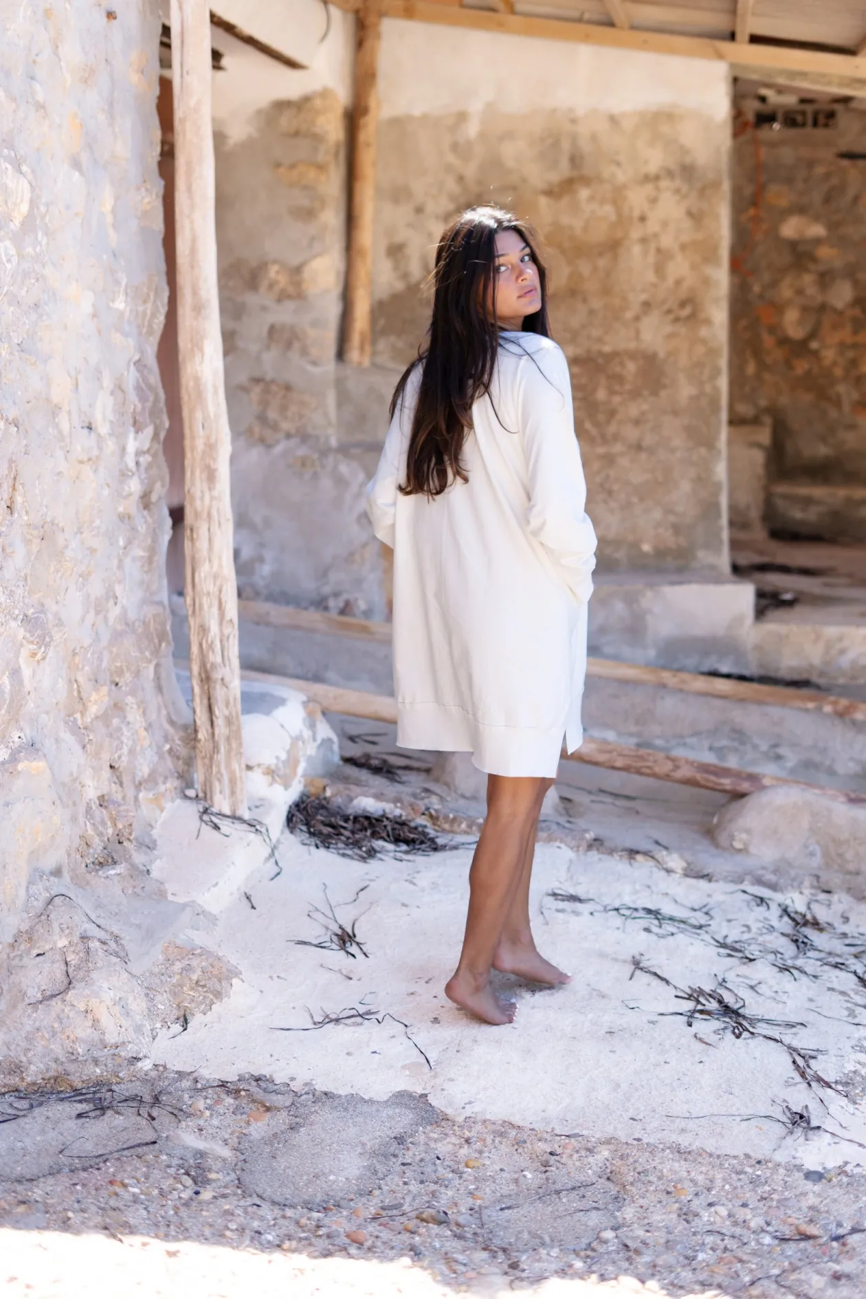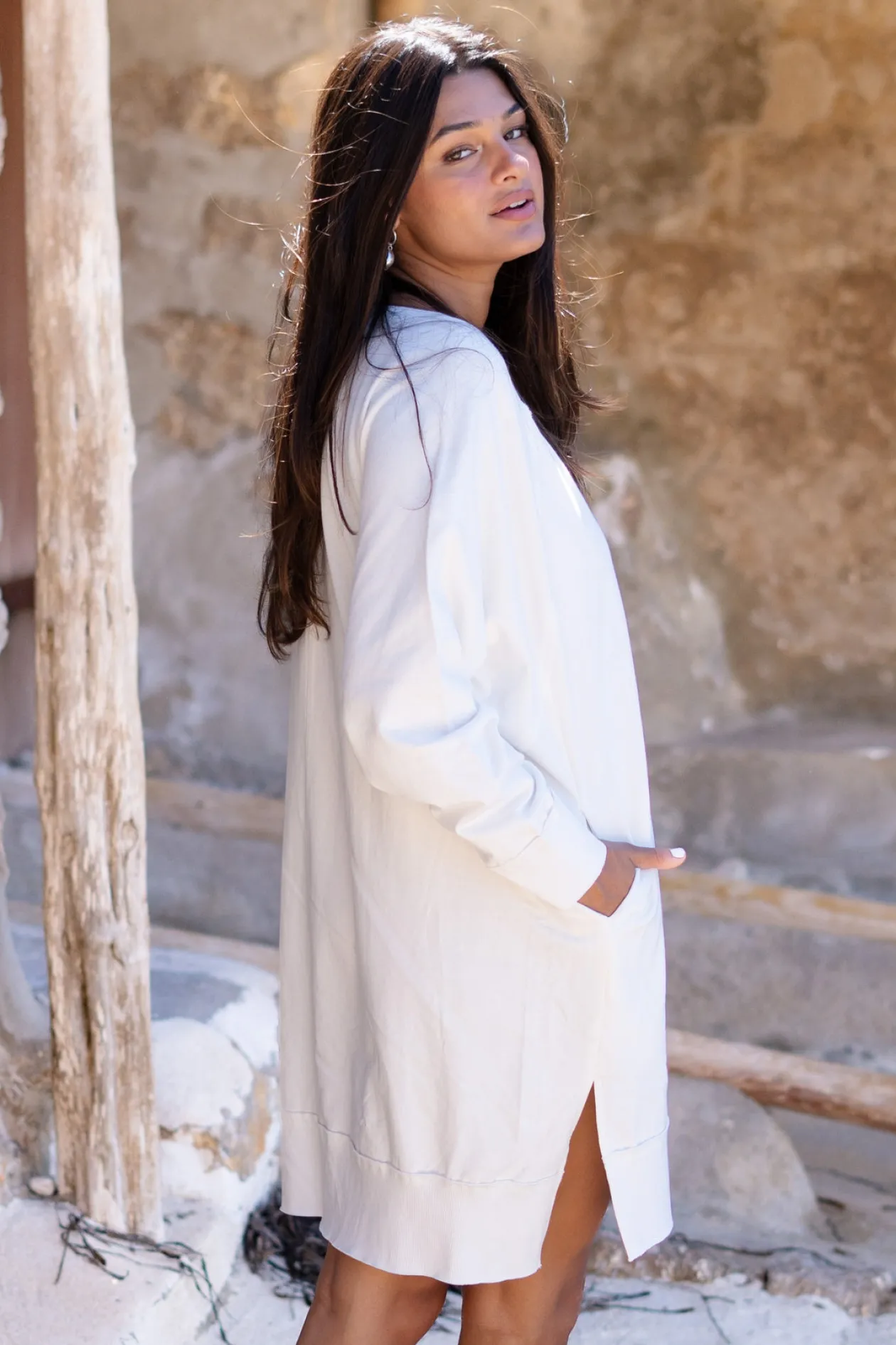 Entdecke das Sweater Dress Chavela Ecru, eine perfekte Mischung aus Komfort und Stil. Dieses Kleid aus 100 % Baumwolle bietet eine mühelose Passform mit einem dezenten V-Ausschnitt und verspielten Taschen. Trage es mit coolen Stiefeln für einen kantigen Look oder mit Sandalen für einen lässigen Vibe. Fühle dich einzigartig!