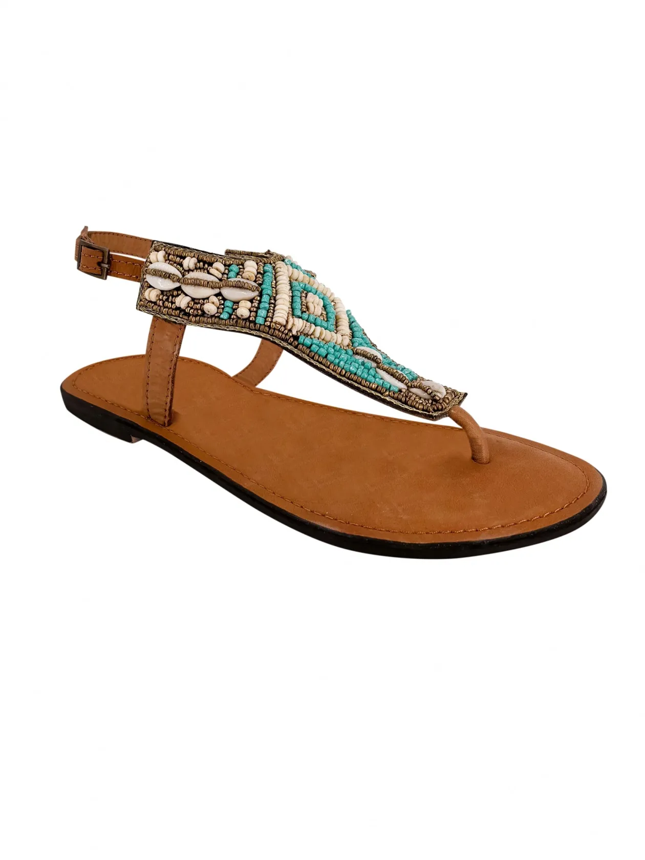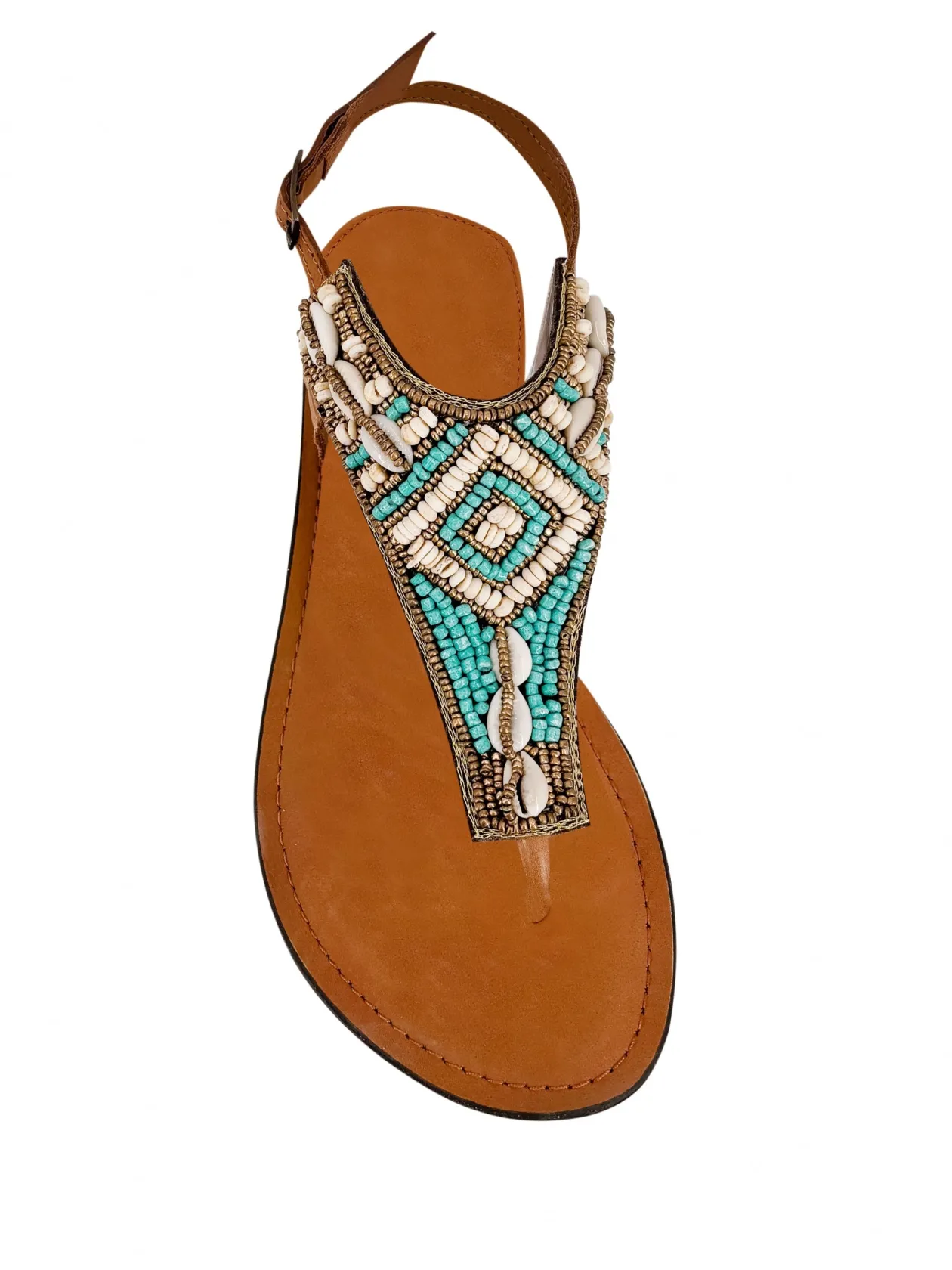Tritt ein in die Welt der sommerlichen Eleganz mit den Sandalen Shell Aqua von ibzmode. Diese wunderschönen Sandalen sind aus weichem Leder gefertigt und mit goldenen und blauen Perlen, Holzperlen und Muscheln verziert. Perfekt zu einem luftigen Kleid oder deiner Lieblingsjeanhose für einen mühelosen, schicken Look. Spüre den Ibiza-Vibe bei jedem Schritt!