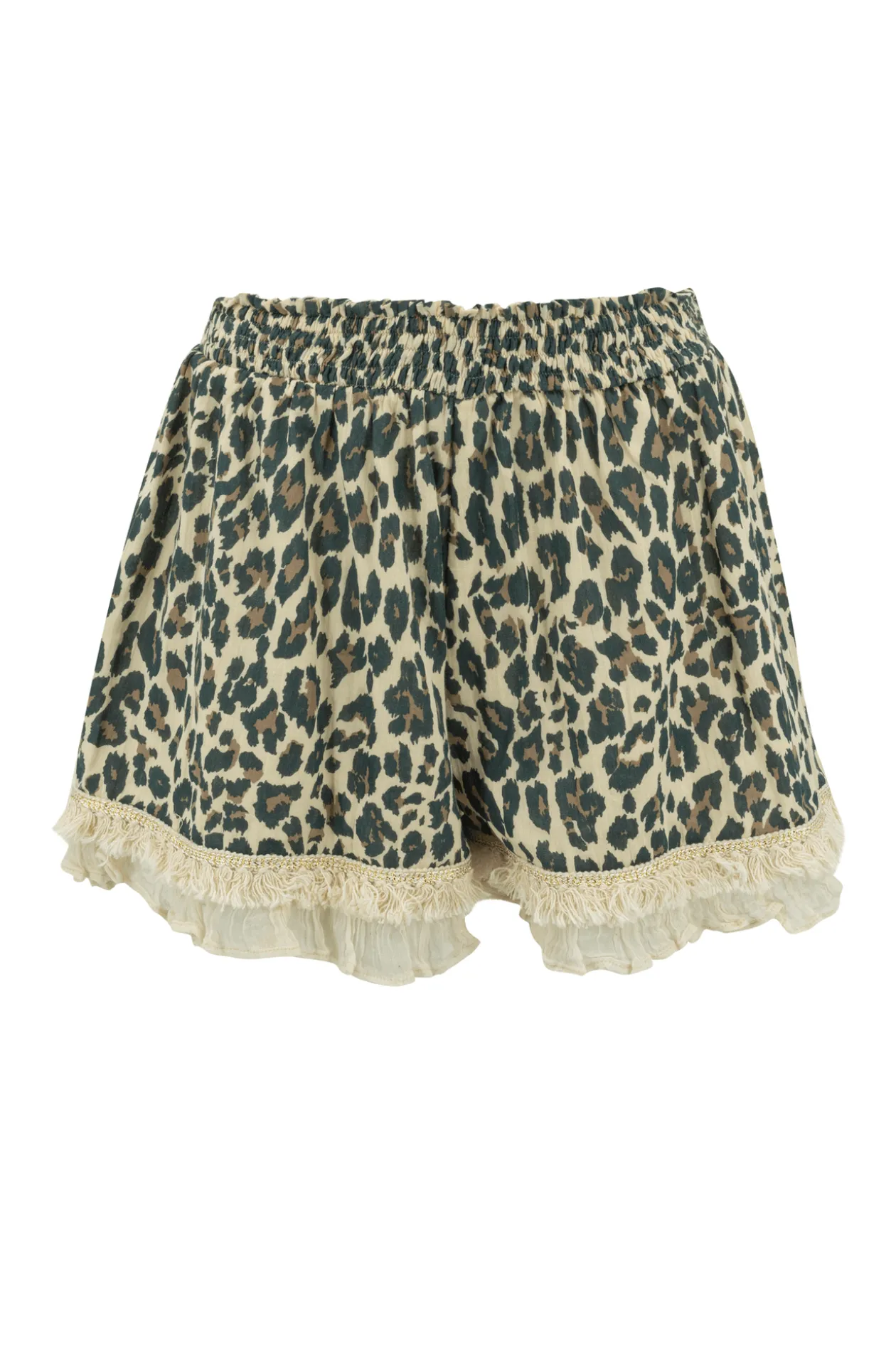 Entdecke unsere Ana Leopard Black Shorts, eine perfekte Ergänzung für deine Boho-Garderobe. Mit eleganten Rüschen und schimmerndem Lurex verziert, lassen dich diese luftigen Shorts bei jeder Gelegenheit strahlen. Kombiniere diese Shorts mit dem passenden Top Ana für einen stilvollen und kompletten Look. Perfekt für warme Tage oder einen trendigen Ausflug!
