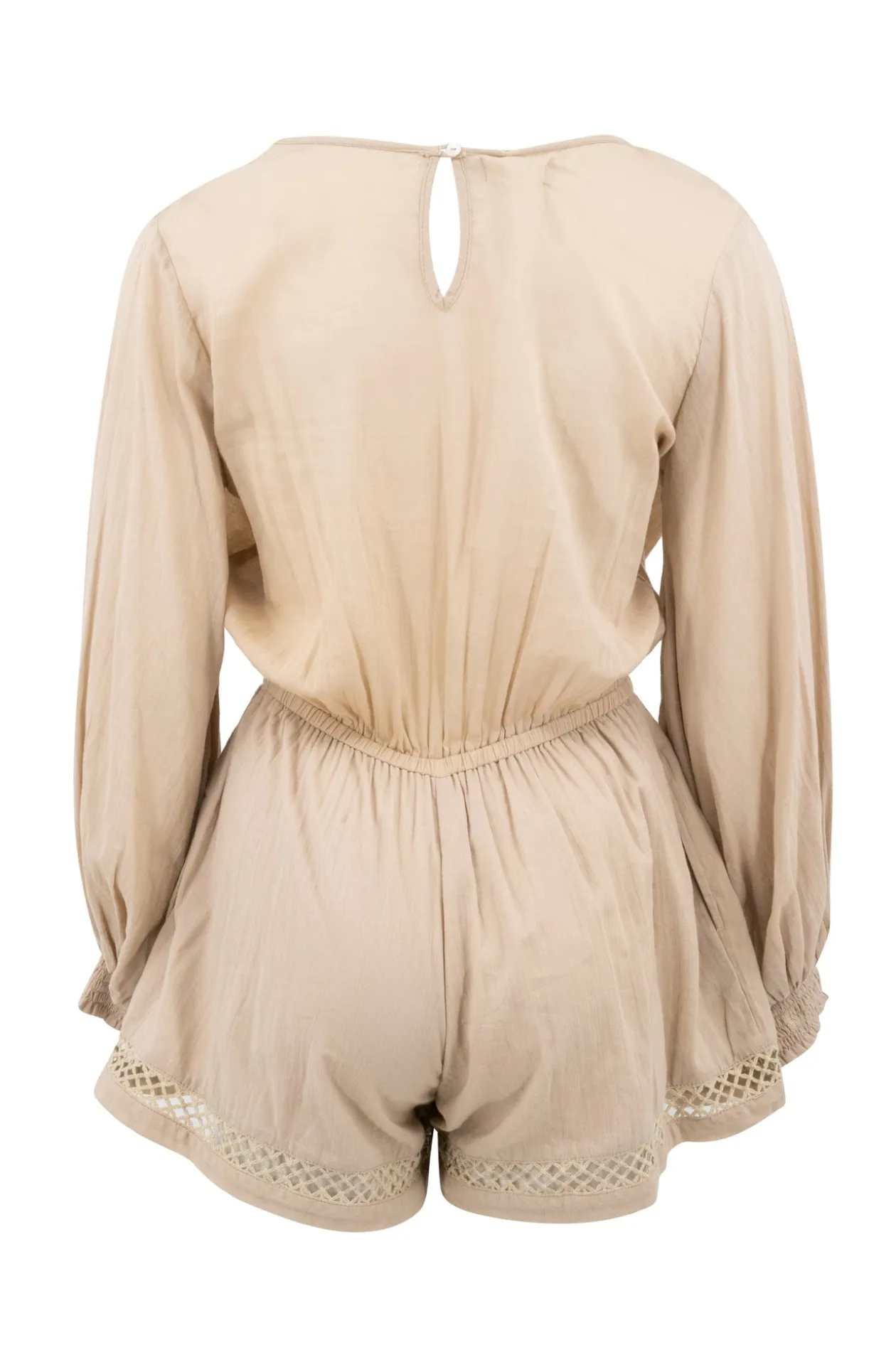 Tritt ein in die Welt der mühelosen Eleganz mit dem Playsuit Eli Sand. Dieser Playsuit aus 100 % Baumwolle bietet ultimativen Komfort, während der tiefe V-Ausschnitt und die langen Ballonärmel für einen raffinierten Look sorgen. Kombiniere ihn mit deinen Lieblingssandalen und -accessoires für einen lässigen, aber stilvollen Ibiza-Look. Fühle dich frei und modisch!