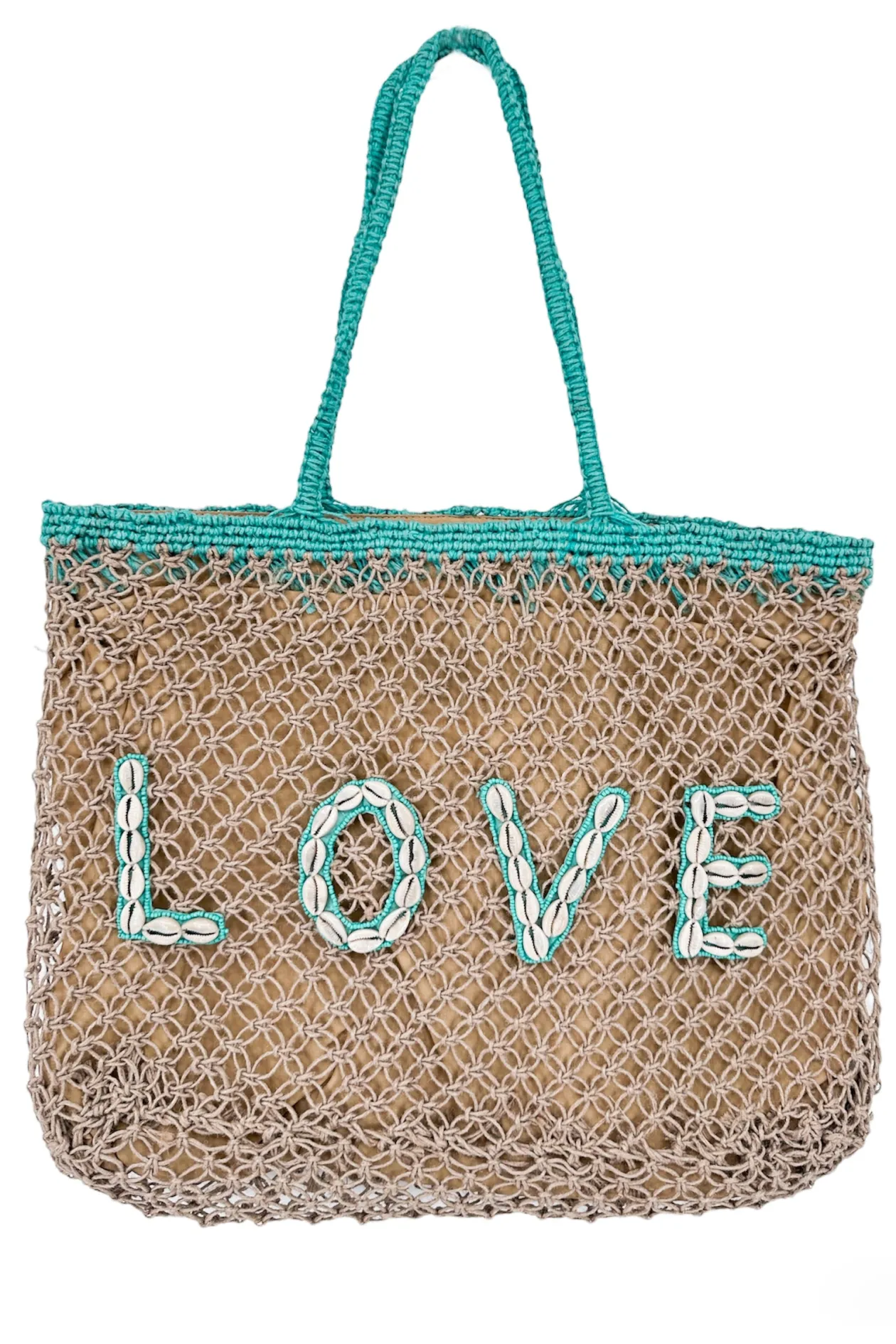 Setze ein Zeichen mit der Strandtasche Seashell Love Aqua von ibzmode! Diese reich mit Perlen und Muscheln verzierte, gehäkelte Jutetasche versprüht Ibiza-Stimmung pur. Sie ist perfekt für einen Tag am Strand oder einen sommerlichen Abendspaziergang und groß genug für all deine wichtigen Dinge. Bring einen Hauch von Boho-Chic in deinen Look!