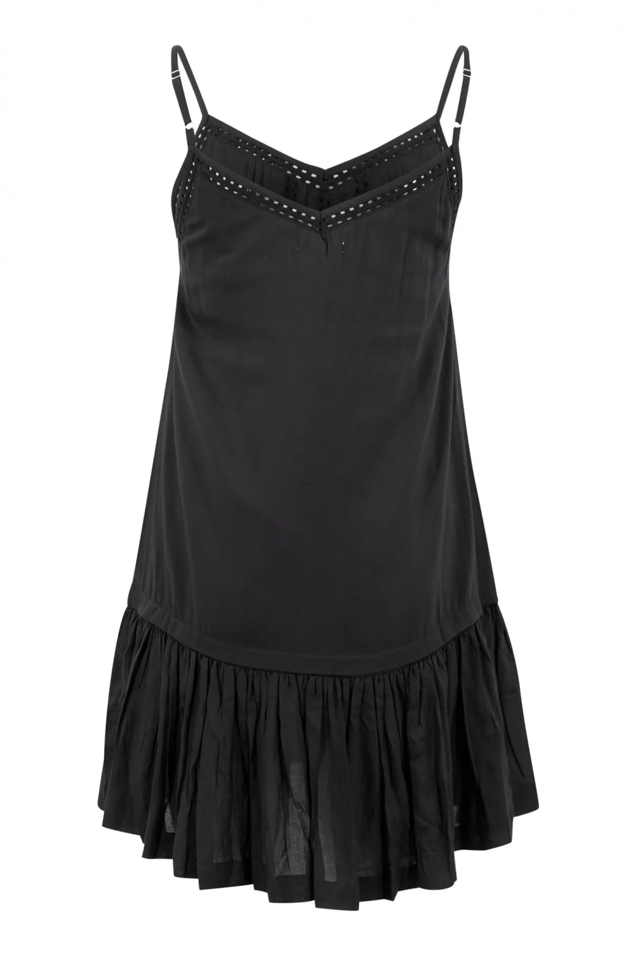 Tauche ein in den Sommer mit dem Strap Dress Mila Black, einer perfekten Mischung aus Eleganz und Komfort. Das Kleid mit V-Ausschnitt und verstellbaren Spaghettiträgern besteht aus 100 % Viskose und ist mit zarter Spitze und Rüschendetails verziert. Kombiniere es mit Sandalen für einen schicken Look oder mit Turnschuhen für einen lässigen Look. Strahlen Sie Selbstvertrauen aus!