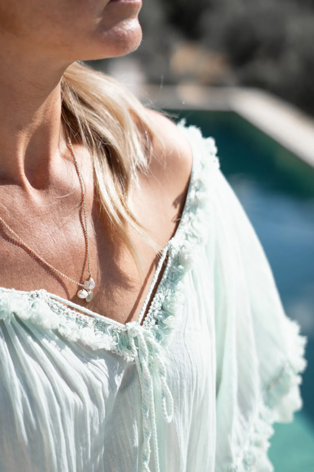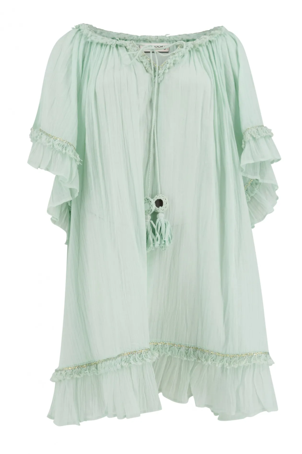 Entdecke die wunderschöne Tunika Ana Mint, perfekt für einen stilvollen Look am Strand. Diese Tunika ist mit zarten Rüschen und einzigartigen Schnüren mit dekorativen Spiegeln verziert, die ihr einen verspielten Touch verleihen. Aus luftigen Materialien gefertigt, ist die Tunika Ana Mint ideal für heiße Sommertage. Peppe dein Strandoutfit mit dieser trendigen Tunika auf!