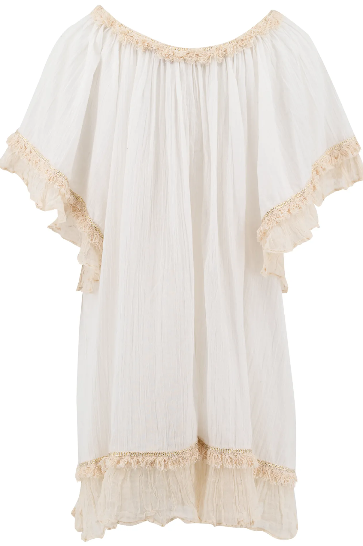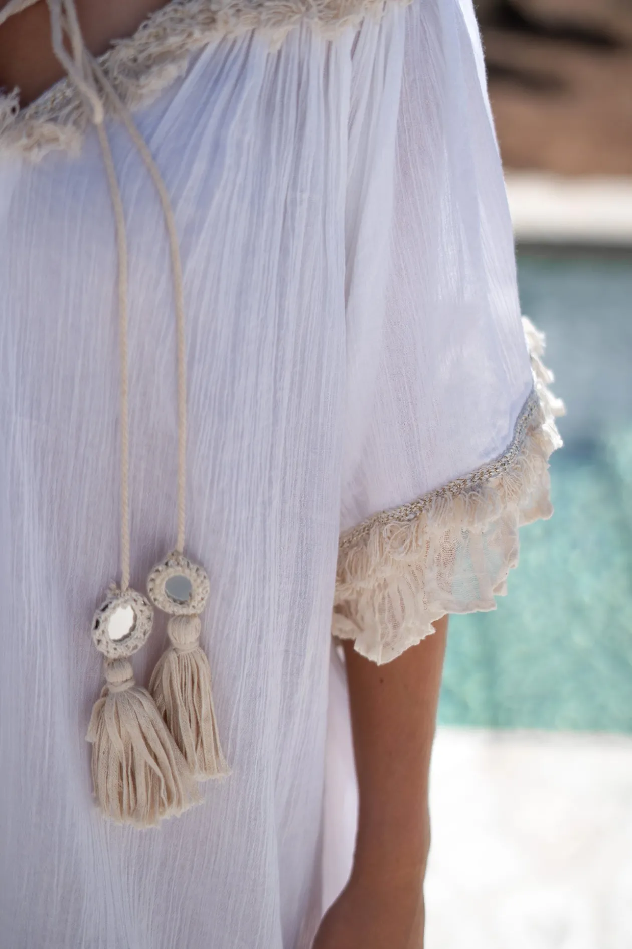 Entdecke unsere Tunika Ana White, das perfekte Outfit für einen Tag am Strand! Diese stilvolle Tunika ist mit verspielten Rüschen und schönen Schnüren mit dekorativen Spiegeln verziert und verleiht deinem Look ein einzigartiges Flair. Die Tunika aus leichtem Material ist ideal, um sie über deiner Bademode zu tragen oder an einem Sommertag leger zu stylen. Setze ein Statement mit der Tunika Ana White und genieße die Sonne mit Stil!