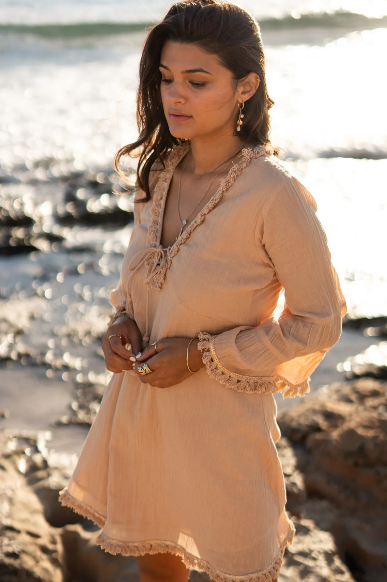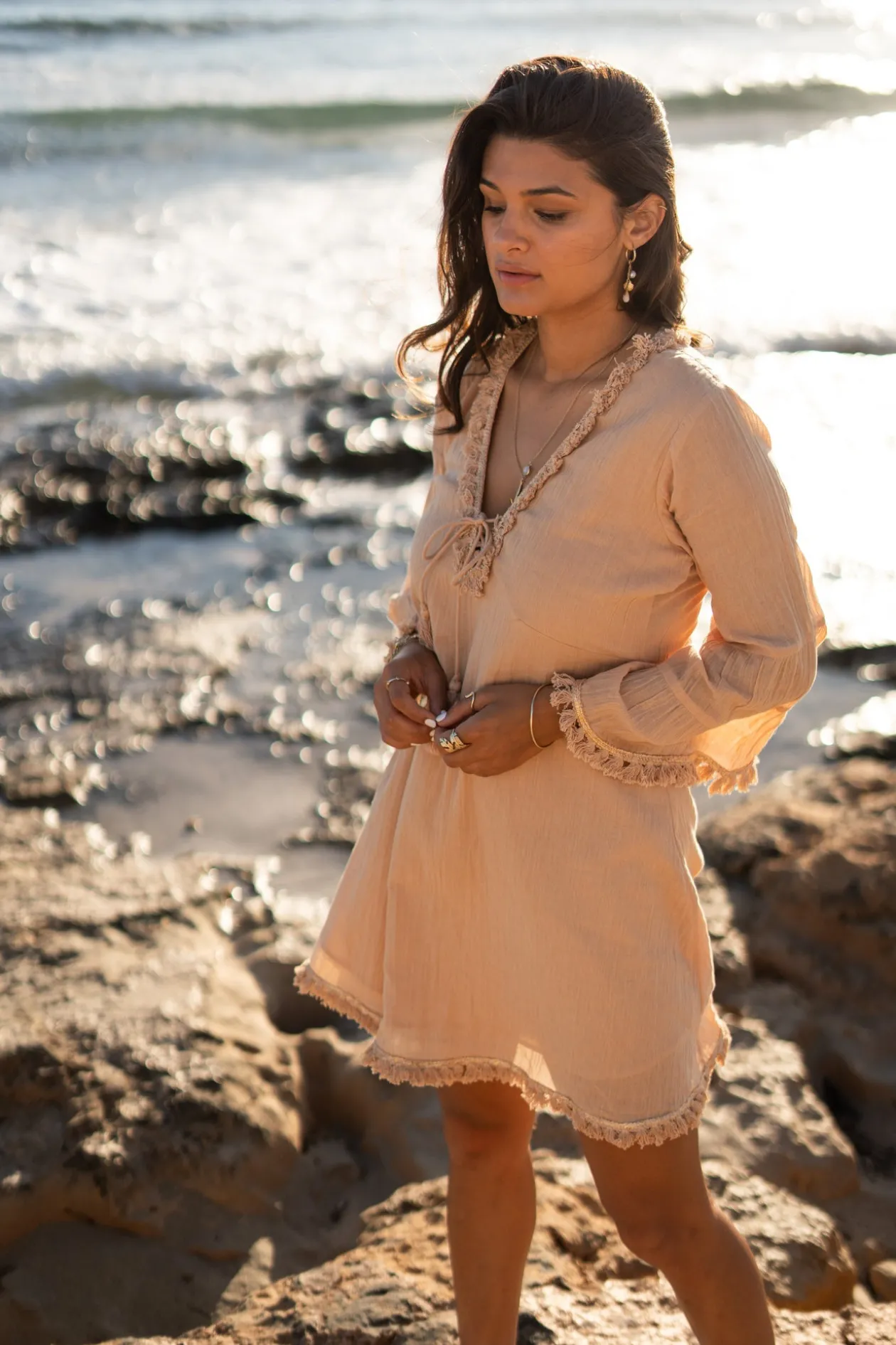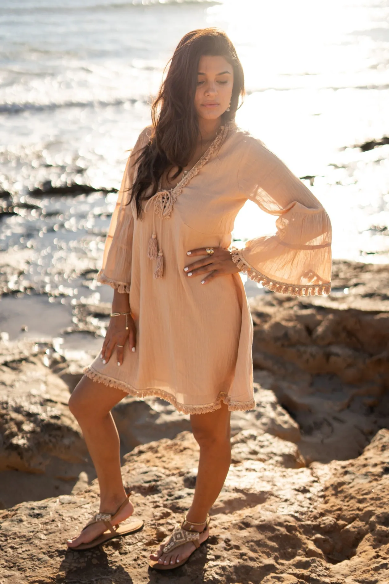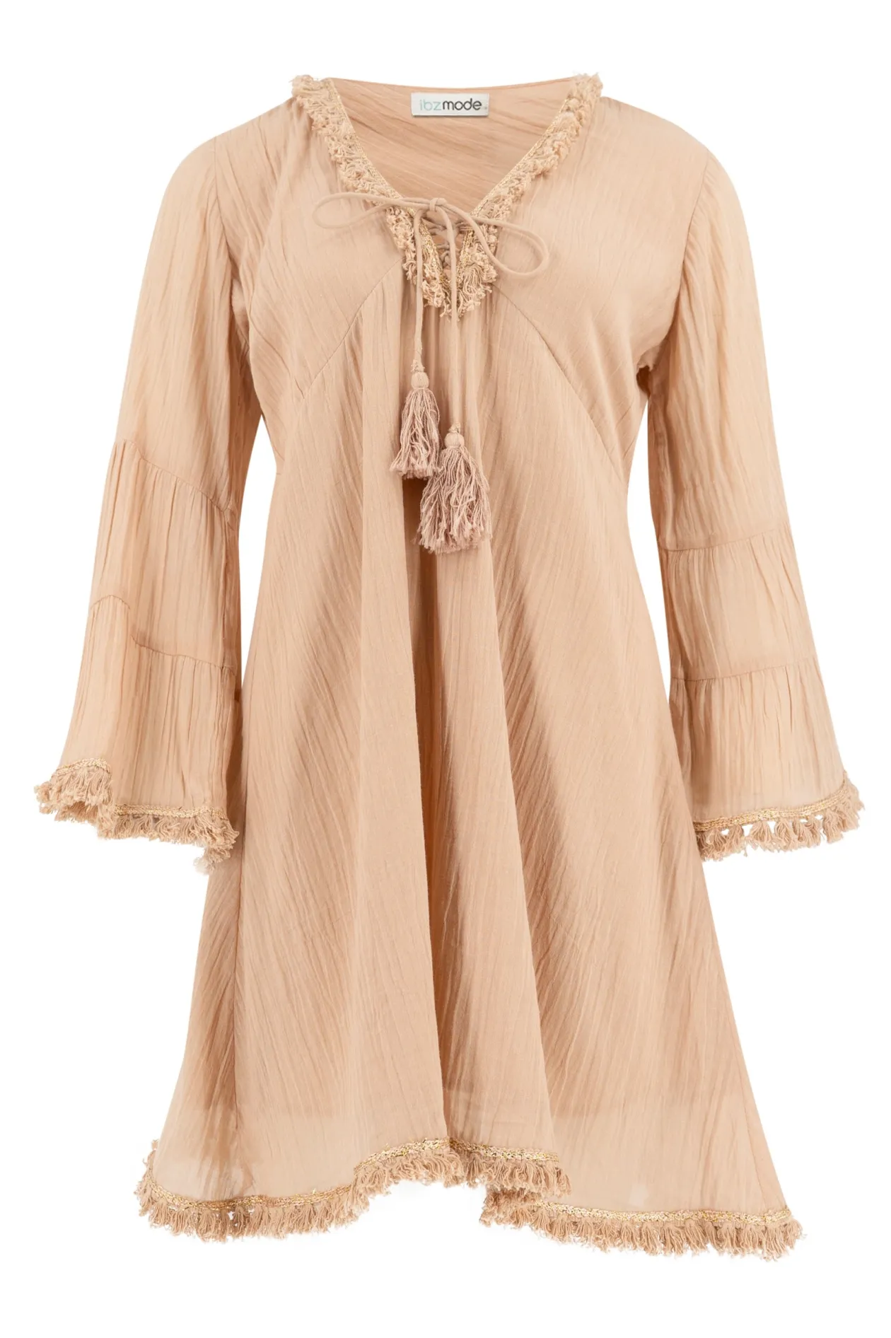 Erlebe die perfekte Kombination aus Boho-Charme und romantischer Eleganz mit unserer Tunika Bonita Nyx Powder. Diese hinreißende Tunika ist ideal für den Sommer und eignet sich perfekt für einen Tag am Strand. Der leichte Stoff und die verspielten Streifen aus goldenem Lurex sorgen für einen strahlenden Look, während die lockere Passform dir Freiheit und Komfort bietet. Ergänze deine Sommergarderobe mit diesem Must-have und lass deine Schönheit in der Sonne erstrahlen!