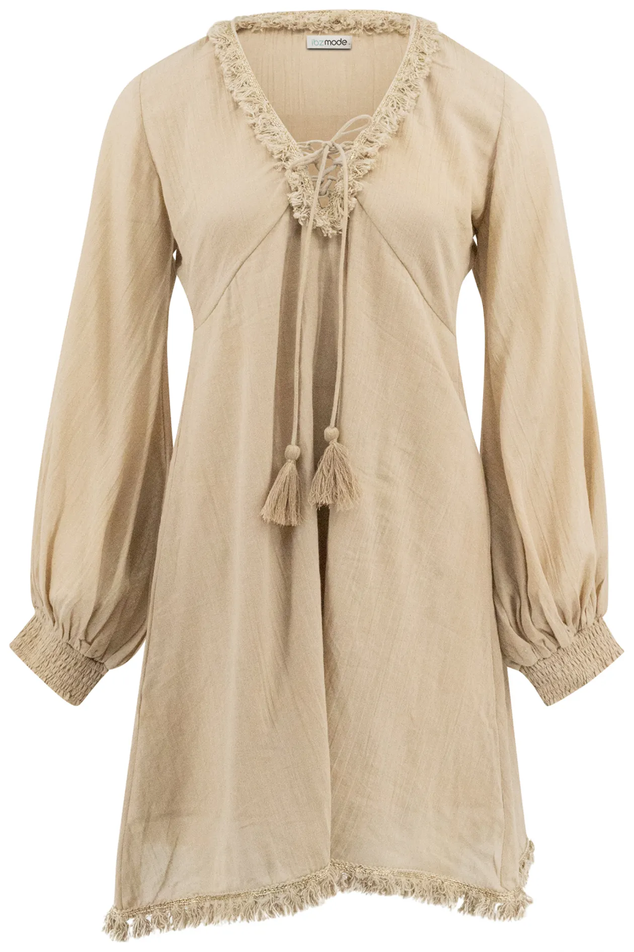 Entdecke den ultimativen Ibiza-Style mit der Tunika Bonito Sand, die eine perfekte Mischung aus lässiger Eleganz und Komfort ist. Die Tunika aus 100% Baumwolle fühlt sich wunderbar luftig an und ist ideal für sonnige Tage. Kombiniere sie mit deinen Lieblingssandalen und Accessoires für einen mühelos eleganten Look. Fühle dich frei und stilvoll!