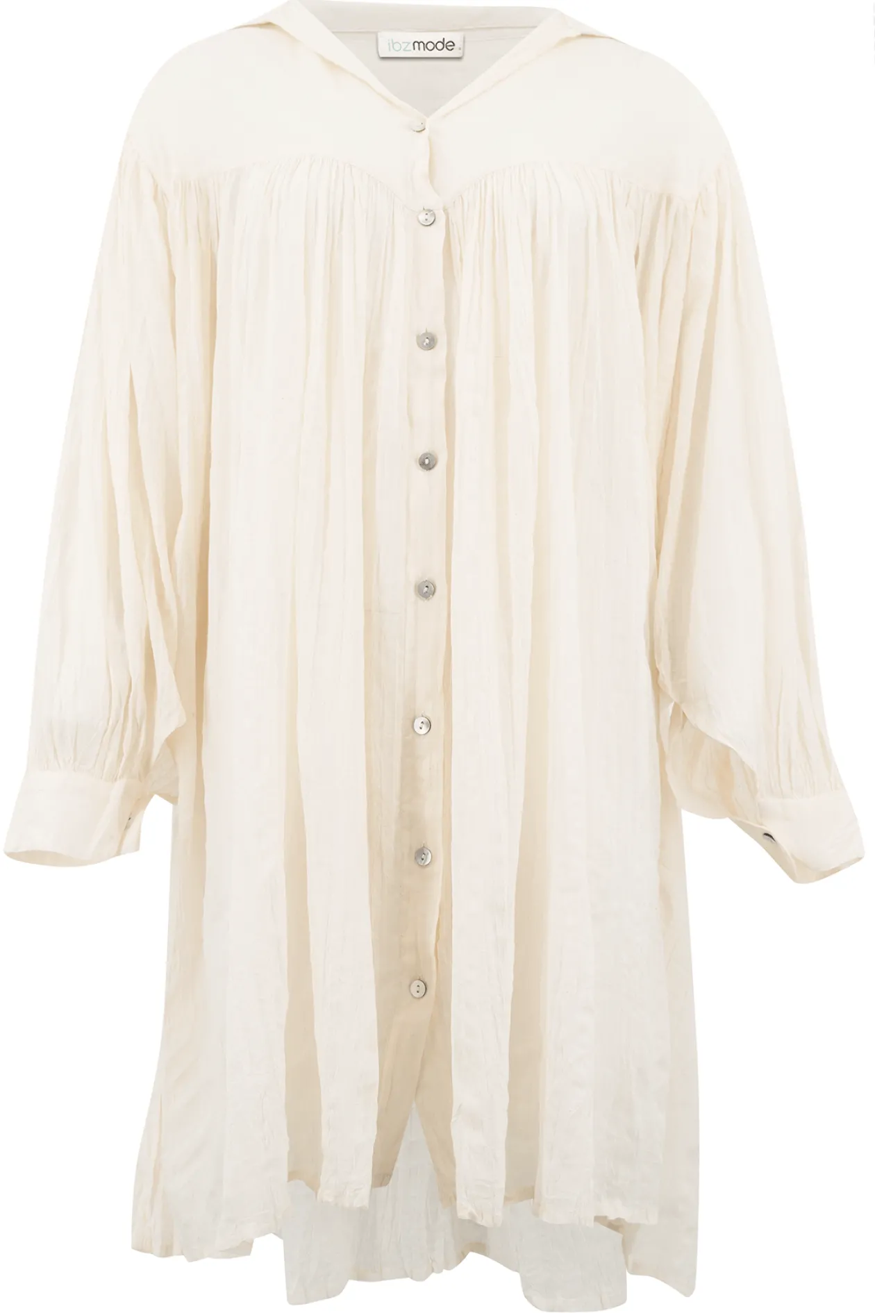 Tritt ein in die Welt der mühelosen Eleganz mit der Tunika Nona Ecru. Diese übergroße Tunika aus 100 % Baumwolle bietet eine luftige und bequeme Passform, die perfekt für Sommerabenteuer ist. Der Stehkragen und der Knopfverschluss verleihen ihr einen raffinierten Touch, während die engeren Handgelenke und das lockere Unterkleid für einen verspielten Twist sorgen. Kombiniere es mit trendigen Sandalen und einer großen Sonnenbrille für den ultimativen Ibiza-Style. Fühle dich selbstbewusst und strahle in dieser vielseitigen Tunika!