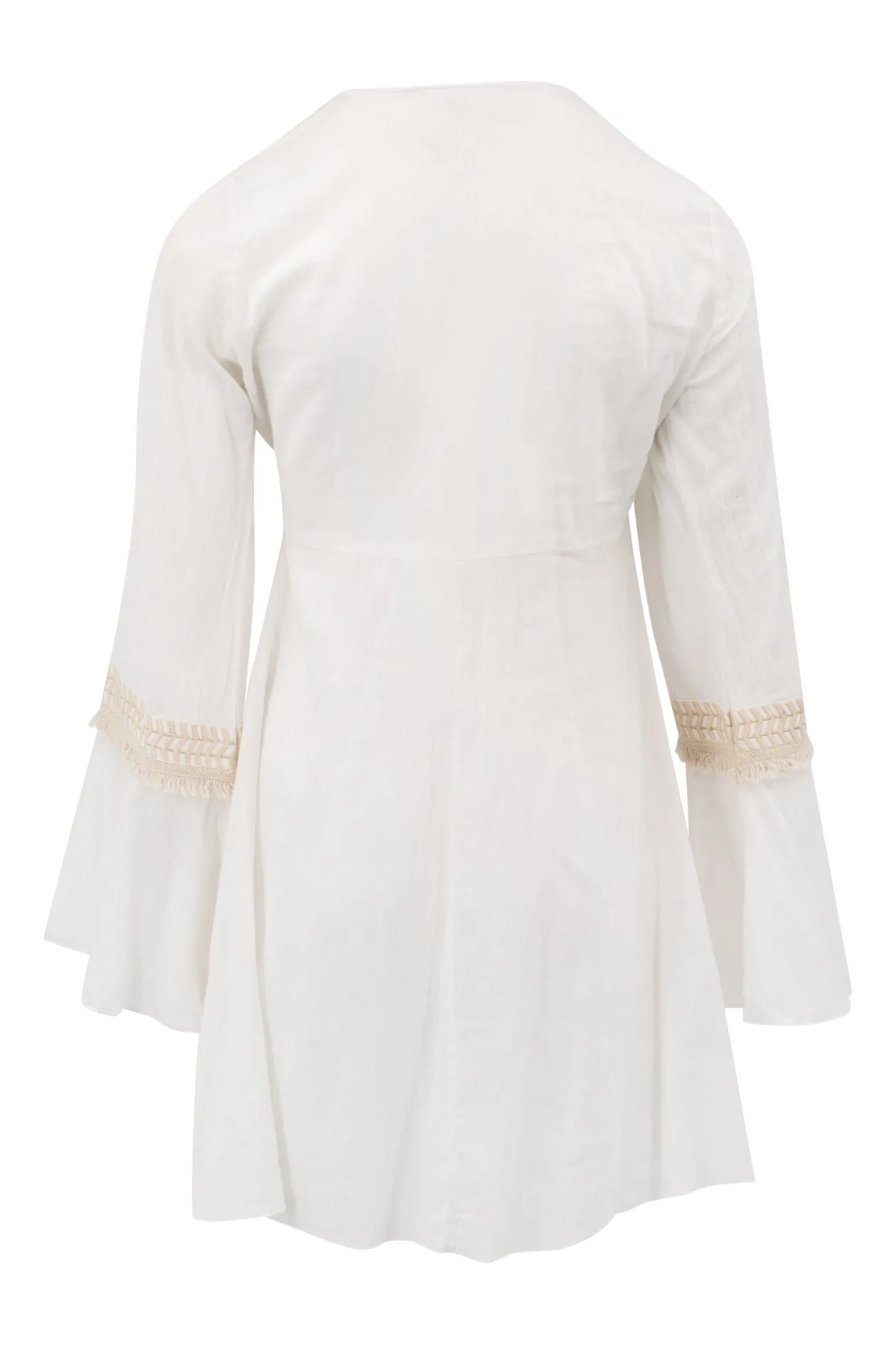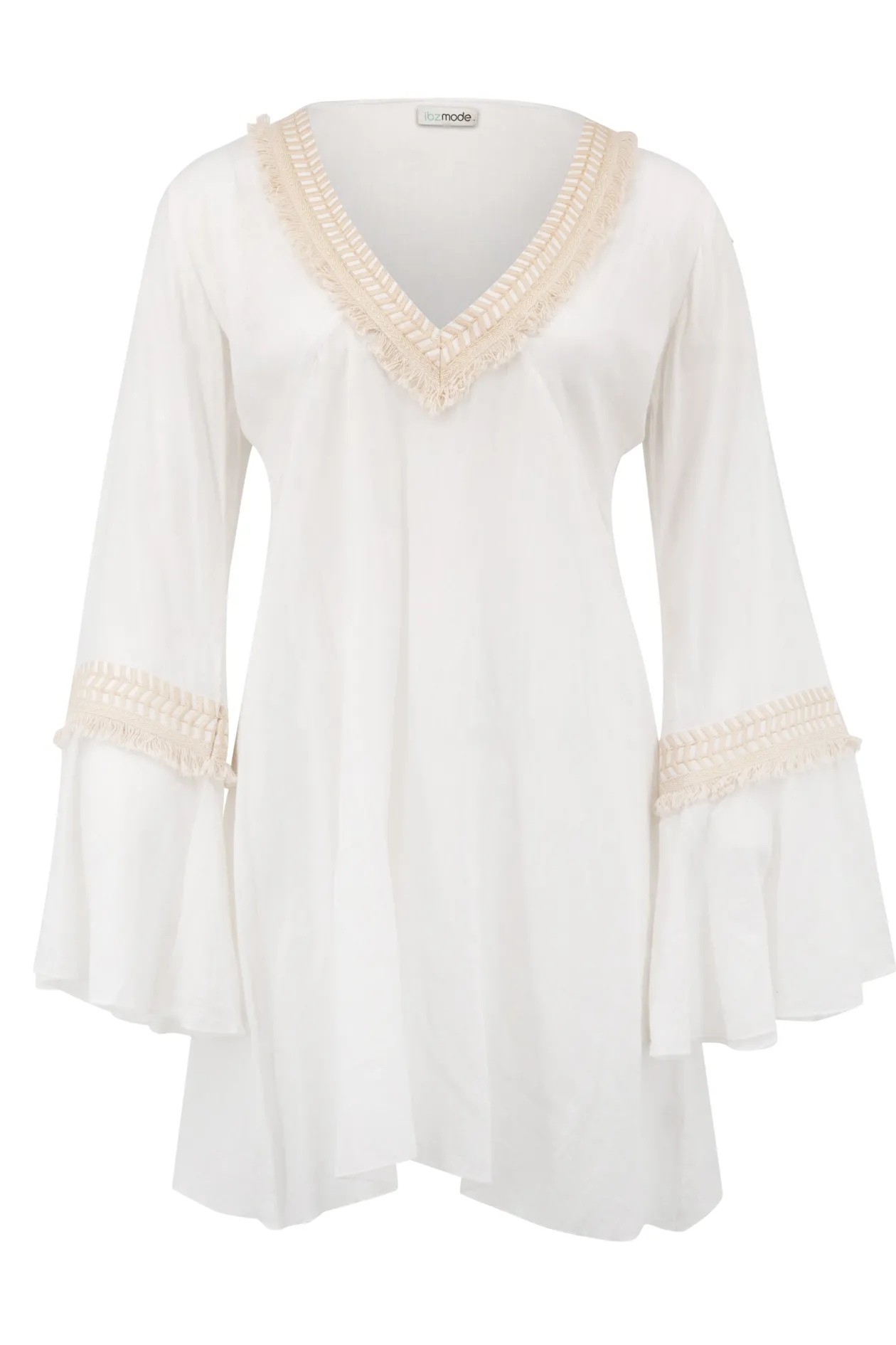 Das ist die Tunika Sira Ivory, eine perfekte Mischung aus Boho-Chic und Eleganz. Diese Tunika aus 100 % Baumwolle mit wunderschönen Stickereien und Flair-Ärmeln bietet mühelosen Stil. Trage sie mit Sandalen für einen sommerlichen Look oder mit Stiefeln für einen Festival-Look. Fühle dich frei und modisch!