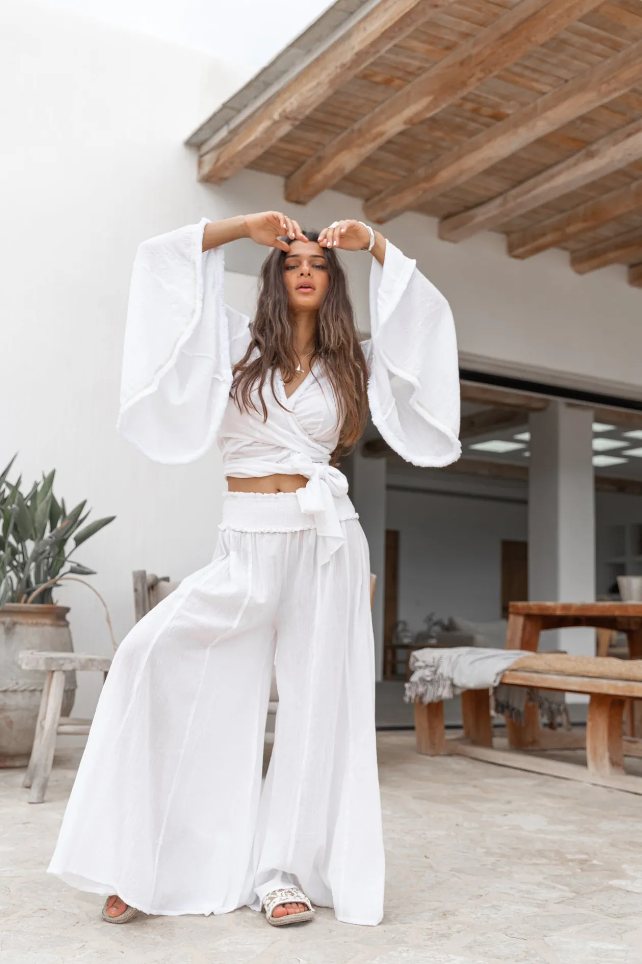 Die Vena White Hose von IBZmode ist dein neues Lieblingsteil für einen mühelosen, schicken Look. Sie besteht aus 100% Baumwolle und bietet mit ihrem elastischen Bund und den weiten Beinen ultimativen Komfort. Trage sie mit einem kurzen Oberteil für einen trendigen Ibiza-Look oder einem übergroßen Pullover für einen entspannten Tag.