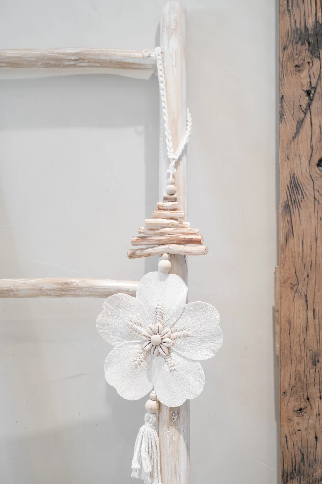 - Mit Muscheln und Holz verziert